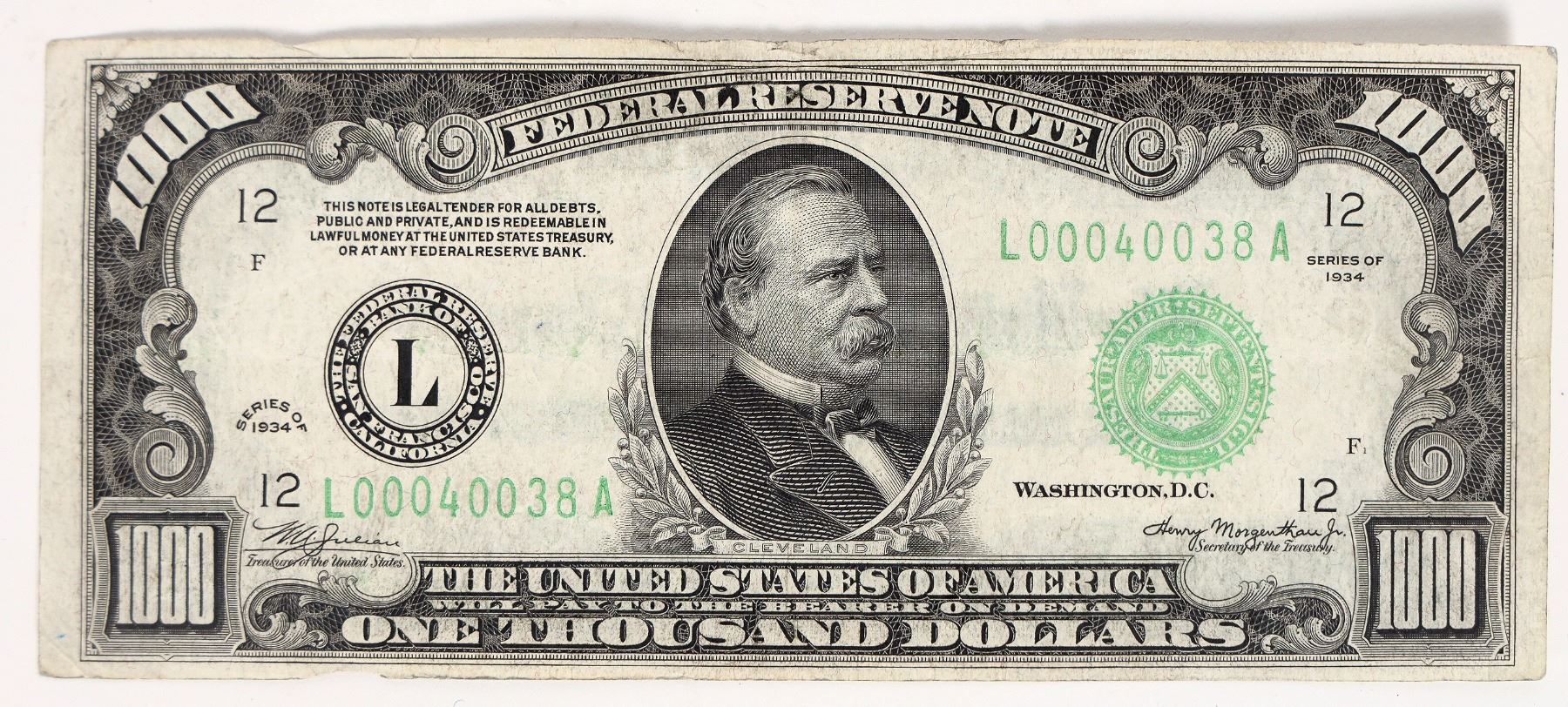Fr 2211-L, signatures of Julian and Morgenthau. Green seal. 90,600 printed. Grover Cleveland vignette. VF-EF condition.