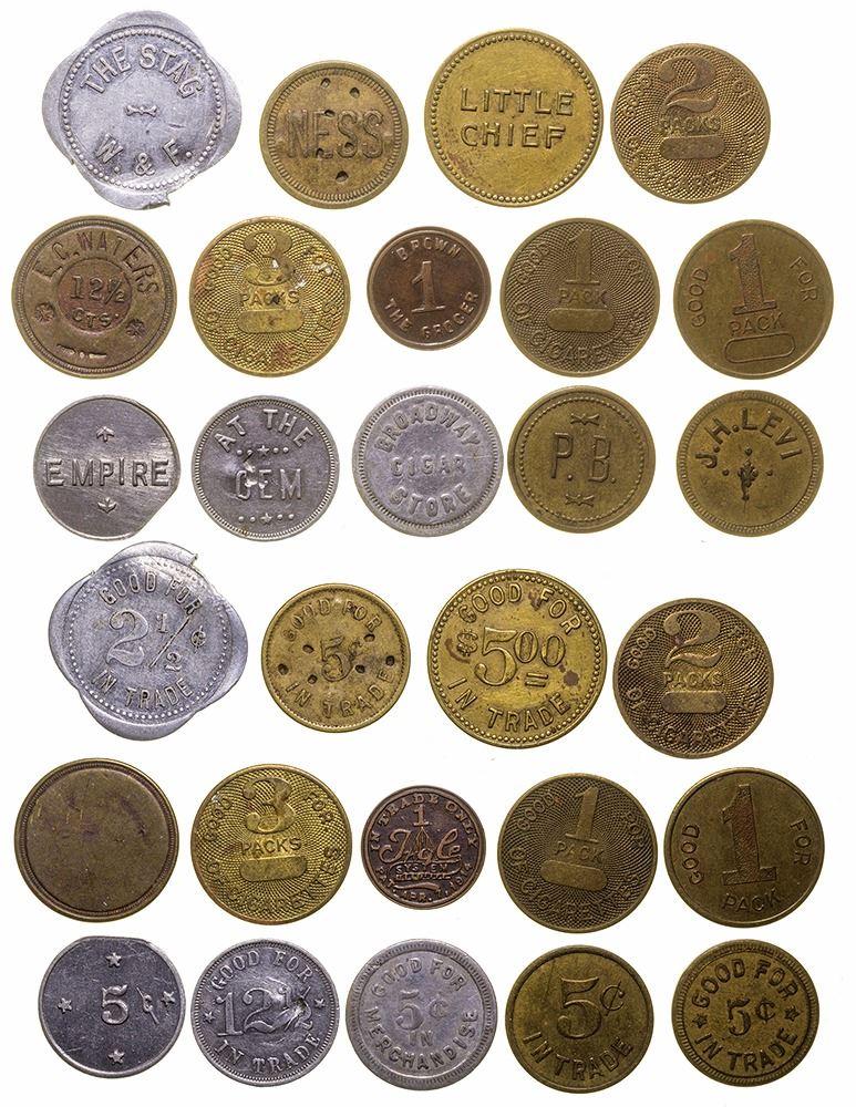 1) GF 3 Packs; 2) Empire; 3) Little Chief; 4) J. H. Levi; 5) Ness; 6) Gf 1 Pack, type 1; 7) P. B.; 8) GF 1 Pack, type II; 9) Broadway Cigar Store; 10) The Stag; 11) GF 2 Packs; 12) Brown The Grocer; 13) At The Gem; 14) E. C. Waters. Great finds! State: Montana City: Billings Date: FHWAC#: 41556