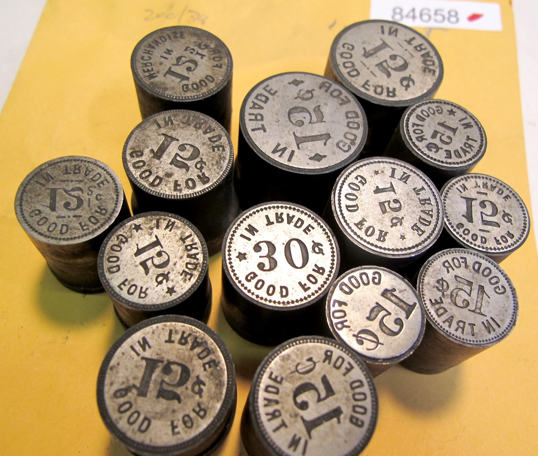 14 dies, all 15 cent and one 30 cent die reverses from tokens from an unknown Seattle Die sinker, c 1905-1950 from the NWTM historical die collection. State: City: Date: HWAC# 84658