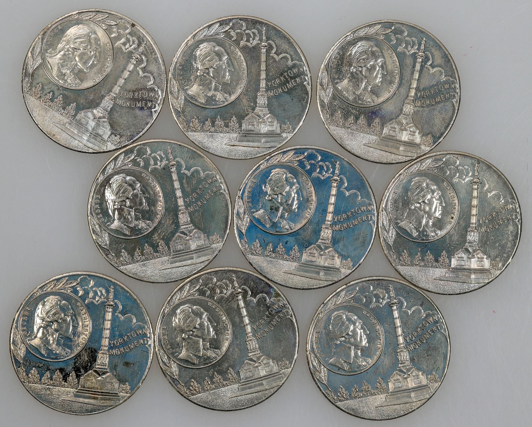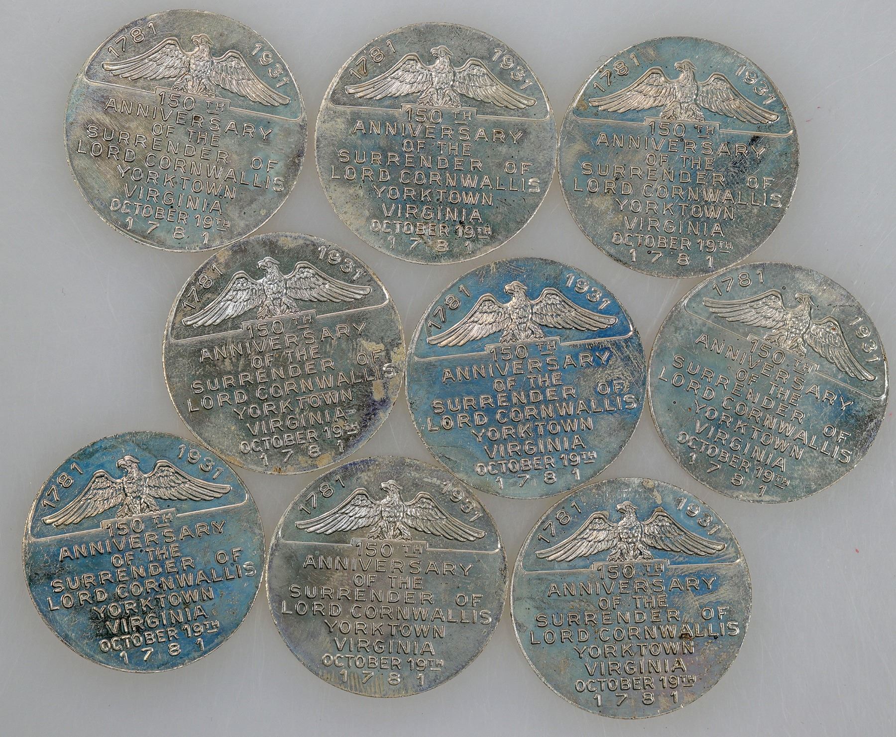 Lot of nine brilliant uncirculated medals celebrating the 150th anniversary of General Cornwallis' surrender at Yorktown, Virginia. Obv.: cameo George Washington/ Yorktown Monument; Rev.: 1781 / 1931 / 150th / Anniversary / Of The / Surrender Of / Lord Cornwallis / Yorktown / Virginia / October 19th / 1781. WM, rd., 32 mm.