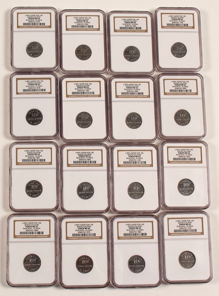 16 MS63 Idaho Saloon Tokens, Skagway, Alaska Date: Location: Skagway, Alaska HWAC# 53334