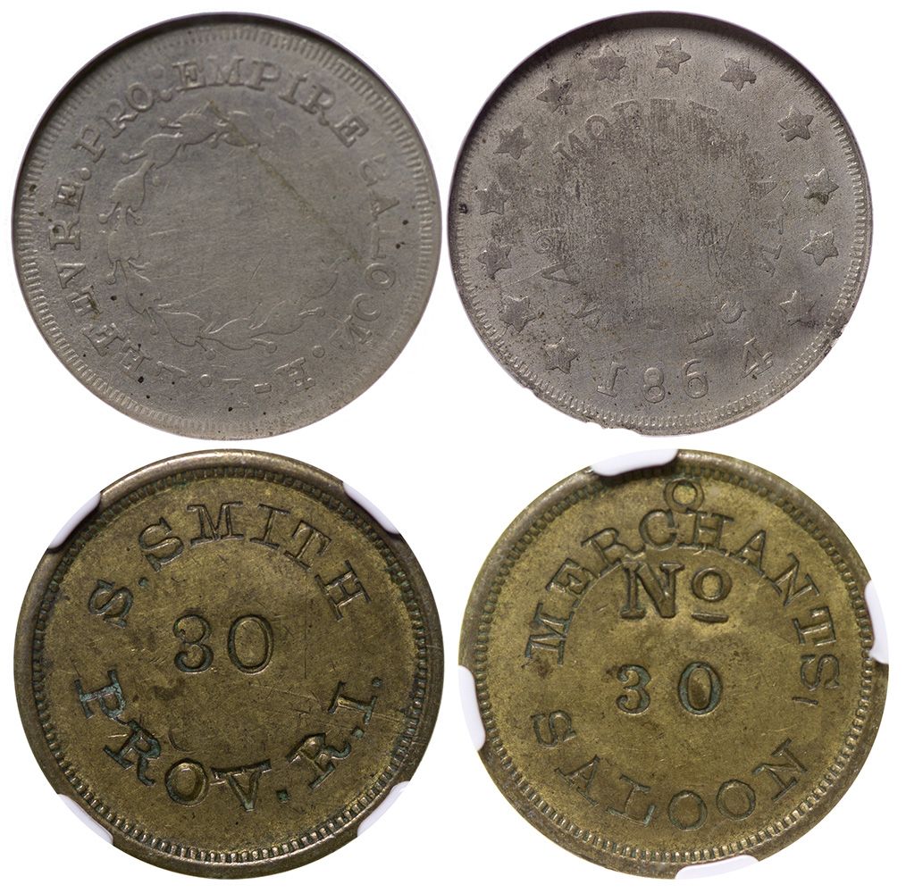 1.) LE FEVRE. PRO. EMPIRE SALOON - 1864 NGC G 4 2.) MERCHANTS SALOON NO.30 B. SMITH - NGC AU 50 c1880City: ProvidenceCounty: State: RIDate: