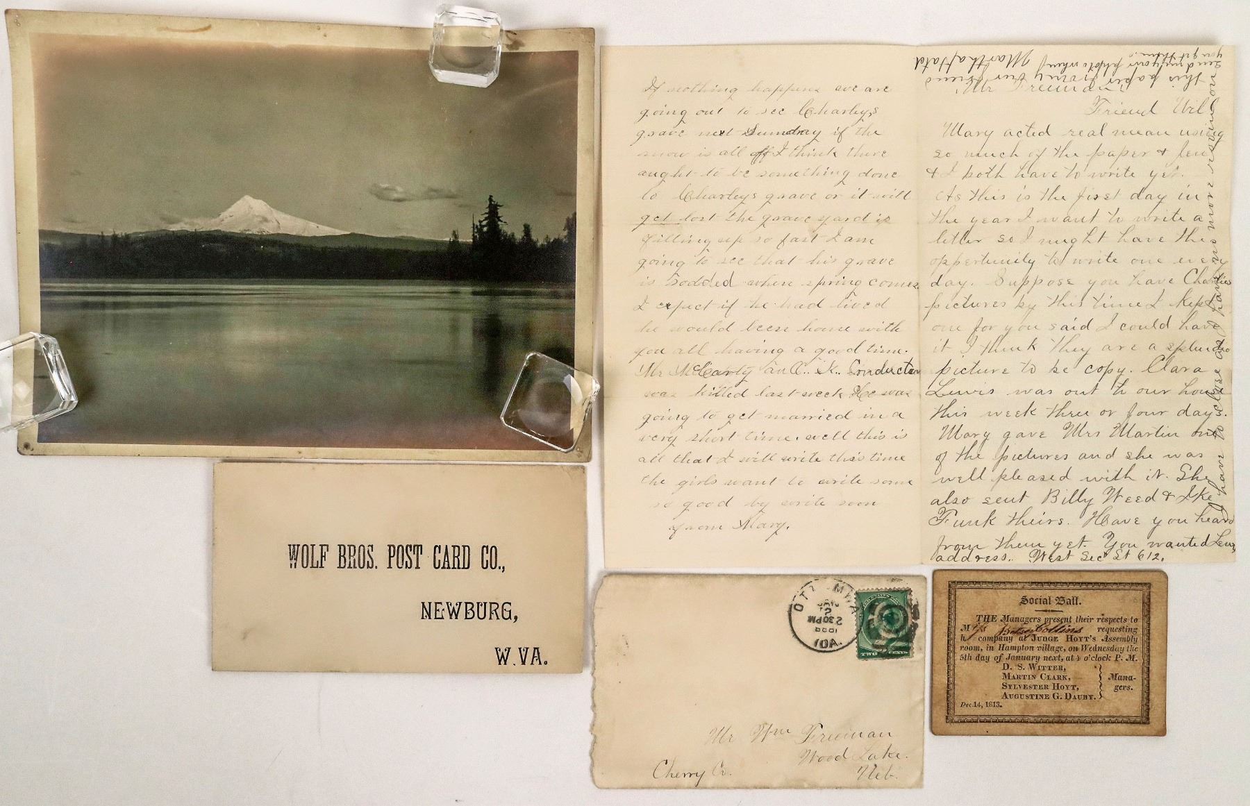 Six items from around the United States, dated from throughout the 1800s. Includes documents relating to the personal lives of Americans as well as financial transactions. Includes one photo by Albert Henry Barnes, noted photographer of the Pacific Northwest.