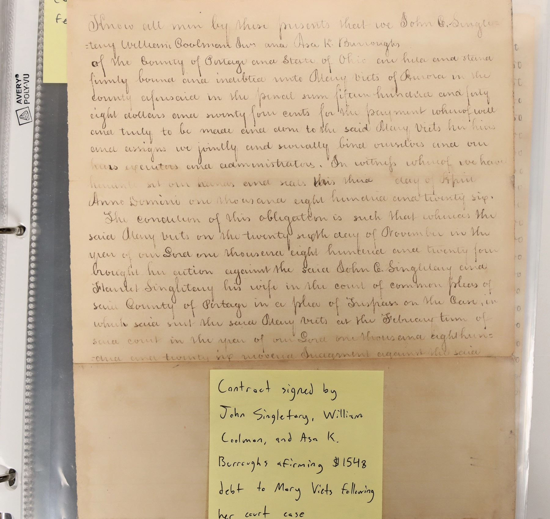 Portage County, Ohio, early slander case re. accused prostitution 1824-1826