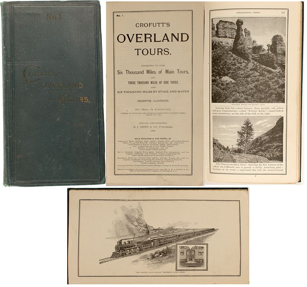 Excellent condition. ‘No. 1’ on top of book represents the Northern portion of the Union Pacific and the Oregon Railway and Navigation Company. Index to illustrations, railroads, lakes, forts, towns, mountains, steamer lines, rivers, springs, side tours, etc. Gilt on front cover is fading, but other than that it is in great shape. Map of Number 1 and Number 2 routes in great shape: some holes at fold intersections.