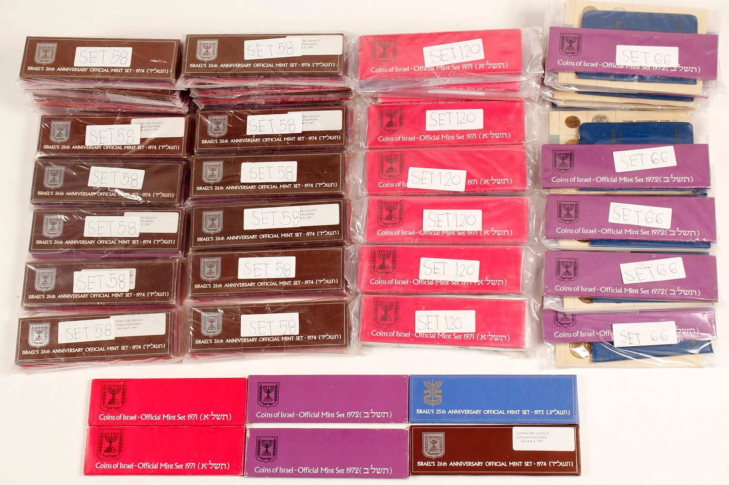 189 Israeli mint coin sets-21 x 1965 proof like, 42 x 1971, 21 x 971 Jerusalem specimens, 63 x 1972, 21 x 1973, 21 x 1974. HWAC# 62101 Date: Location: Israel
