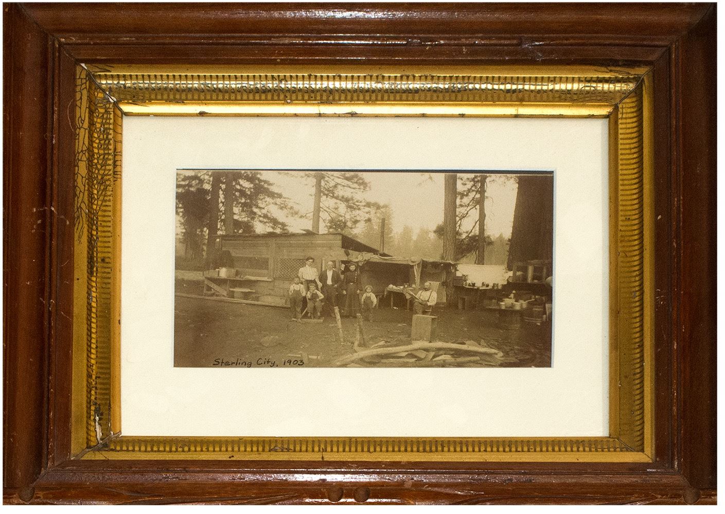 Original photo, 6 x 9", framed and matted in old frame, but not contemporary to photo. Sterling City in Butte County was formed by the Diamond Match Co. to garner wood from local forests for matches. This photo shows a family camp there. State:California City:Sterling City Date: ID#2941