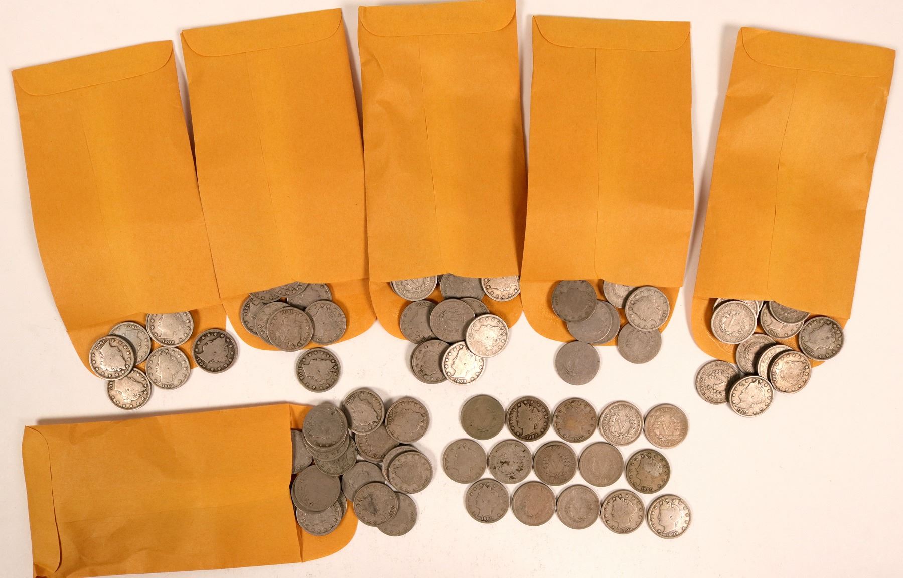 120 Liberty Head nickels minted 1908. Graded AG-VF.