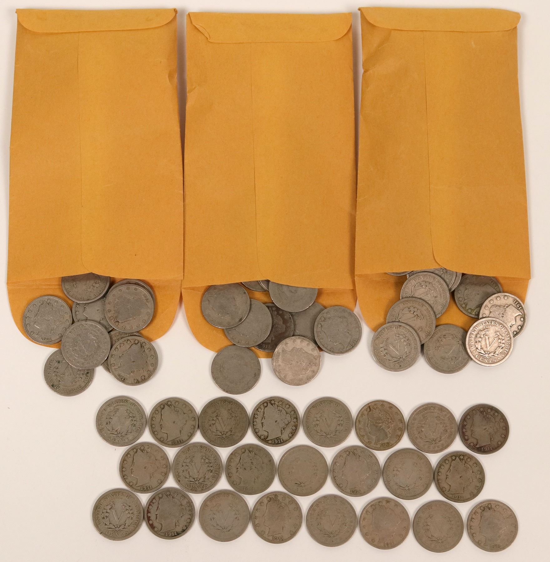 89 Liberty Head nickels minted in 1911. Graded AG-VF.