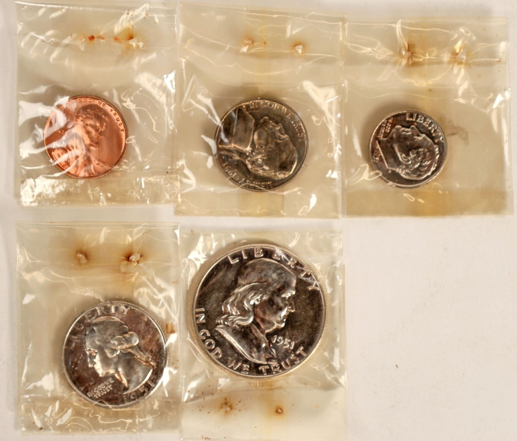 Early proof set in original box. Five coins: penny, nickel, dime, quarter & half dollar. Mintage of only 57,500.