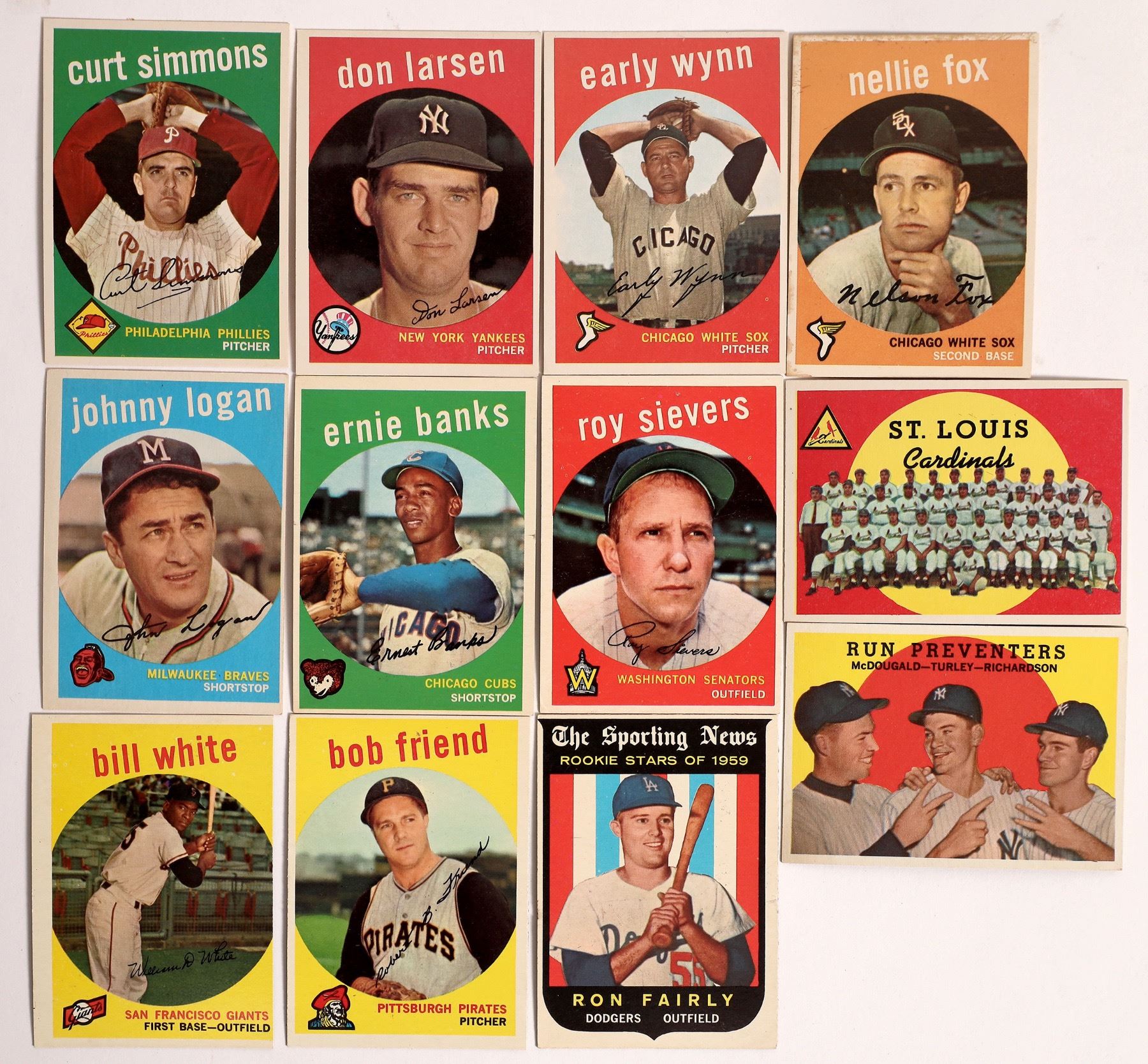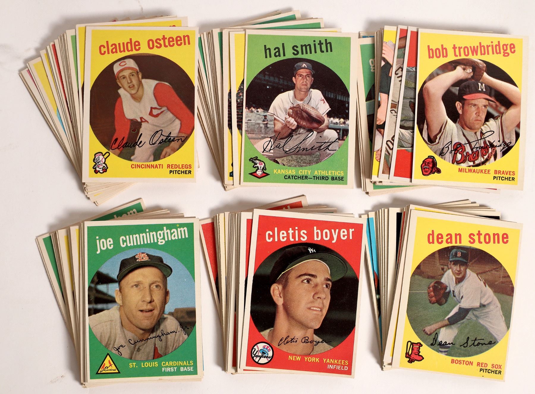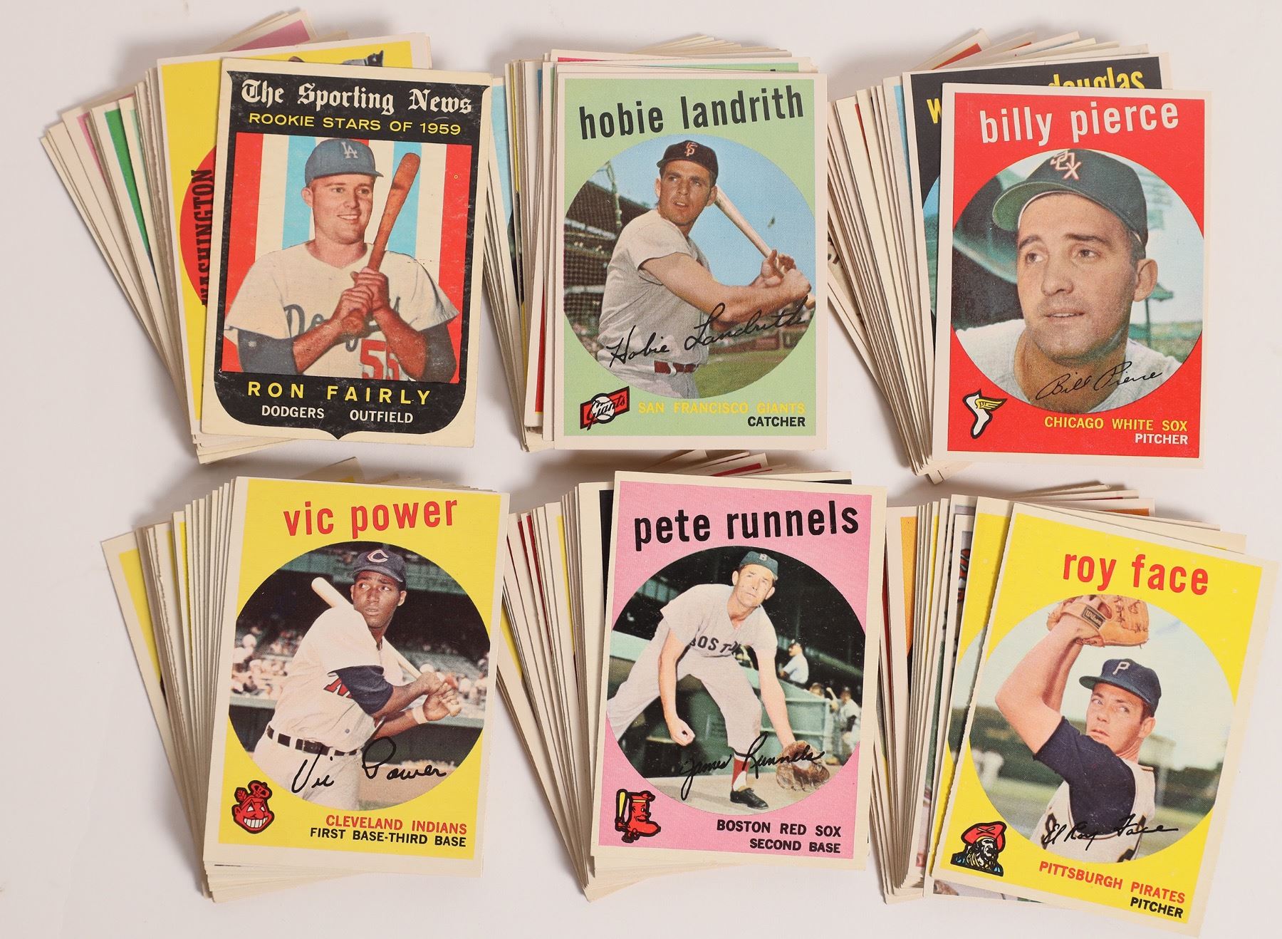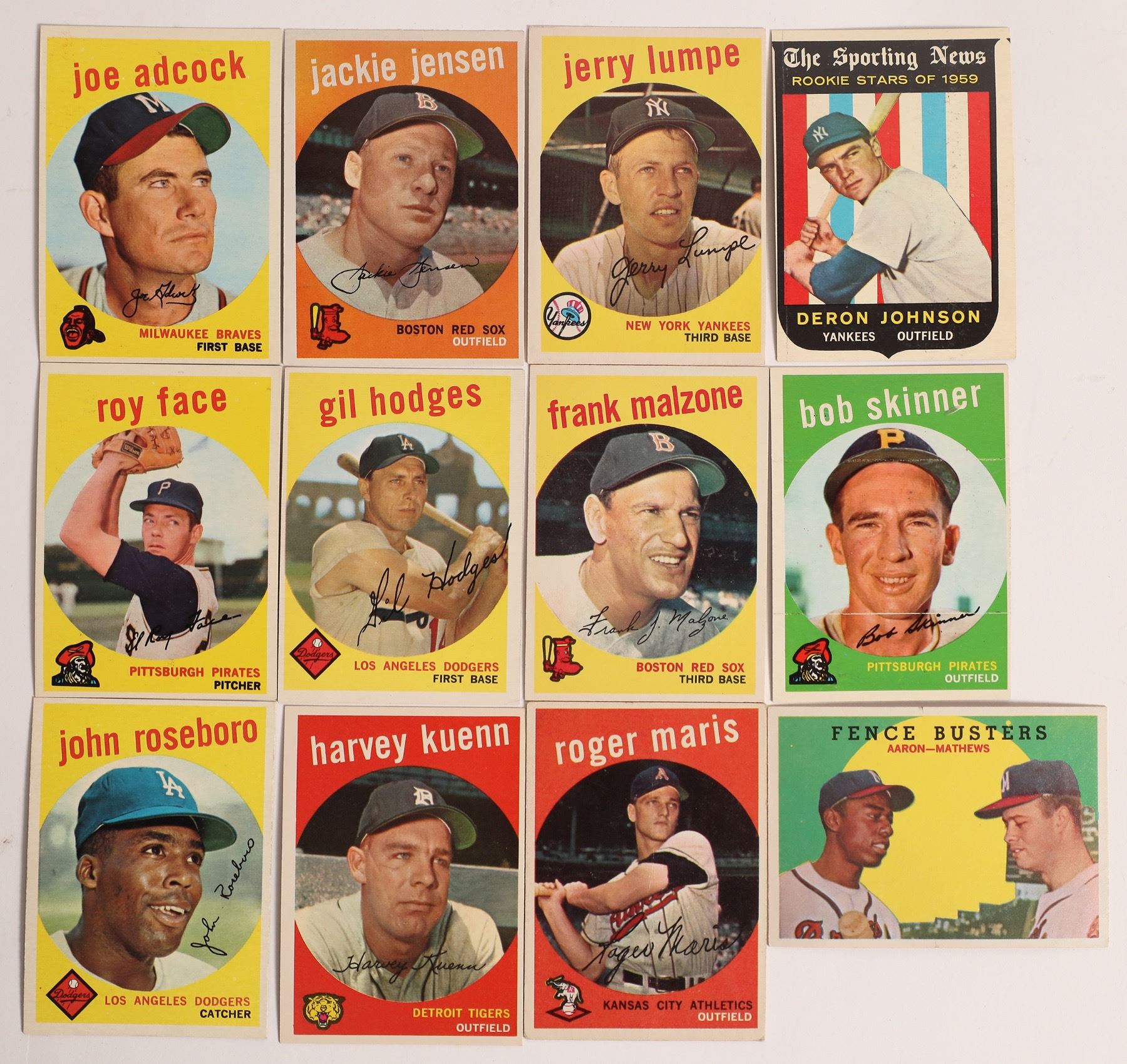 Approximately 250 cards! Includes the likes of Roy Sievers, Early Wynn (6 cards), Bob Friend, Ernie Banks (2), Don Larsen (2), Fence Busters Combination Card of Aaron & Mathews (6), Roger Maris (2), John Roseboro, Joe Adcock (5), Roy Face (3), Gill Hodges (3). Mostly players, but some team cards, all stars, etc. As you can see from the photos there are some big names, but many lesser known players also!
