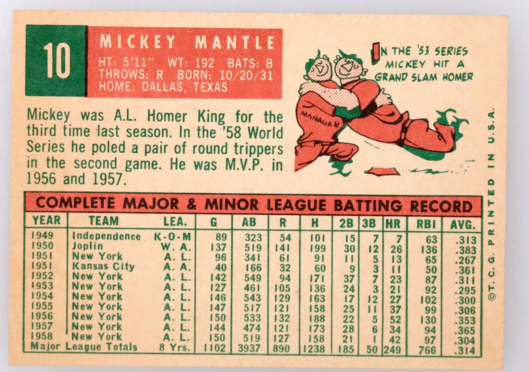 Number 10. No edge wear. Nearly perfect border. A fine card for your collection!