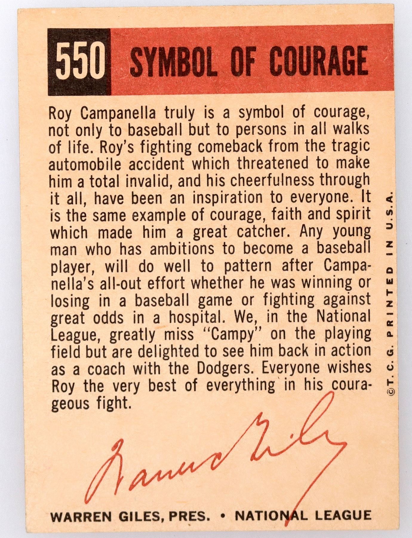High number 550! Shows Campanella in a wheel chair and highlights him as a symbol of courage. Nice condition! See Photo!