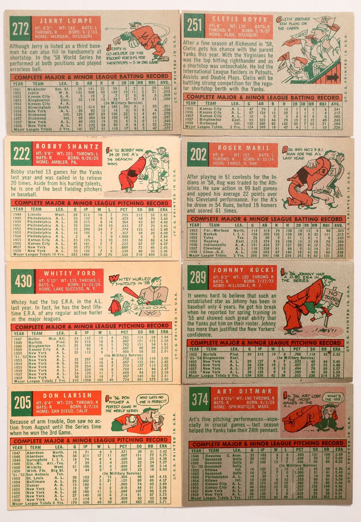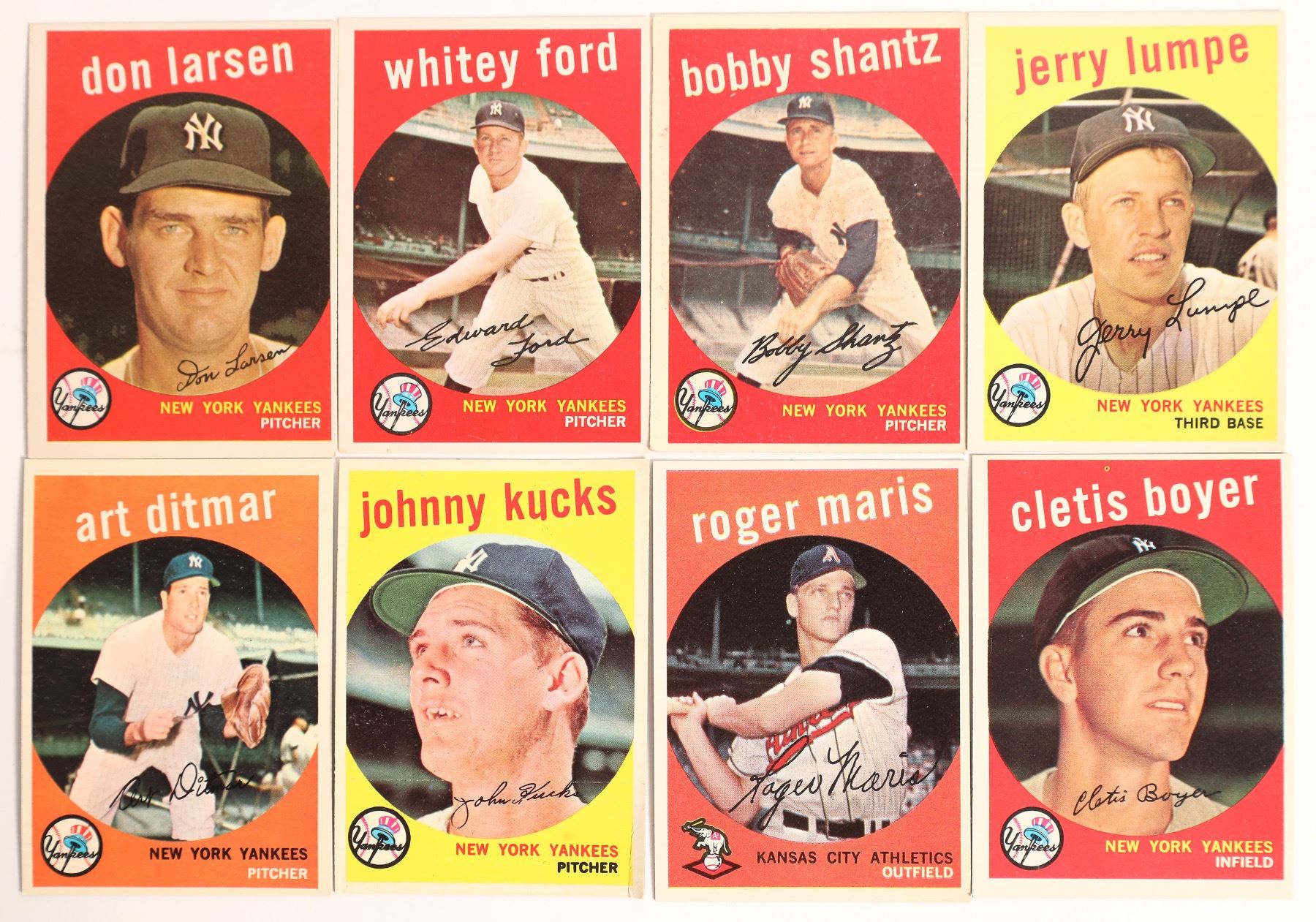 Eight cards. Includes extremely nice Whitey Ford, Don Larsen and Roger Maris Cards. Also Cletis Boyer, Jerry Lumpe, Bobby Shantz, Johnny Kucks, and Art Ditmar. See photo for fabulous condition on all cards.