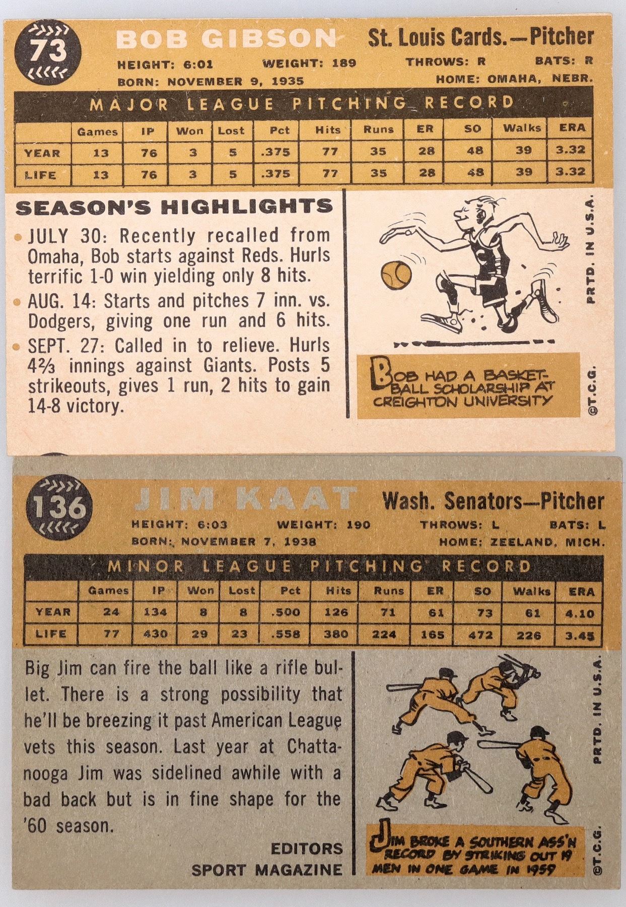 Number 136 for future Hall of Famer. Number 73 for second year Bob Gibson. This is a nice young pitching pair! Very Good / Excellent