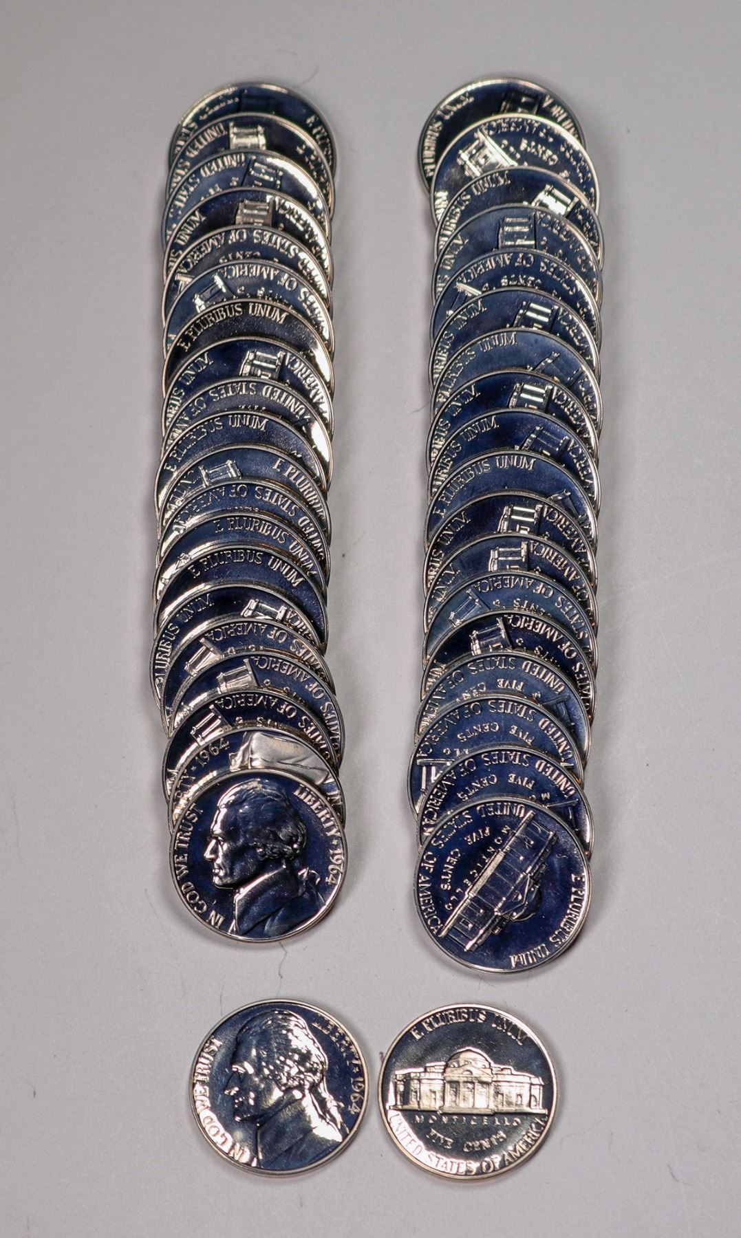 One roll (40 coins) of gem proof 1964 Jefferson nickels. [] [] [] [] []