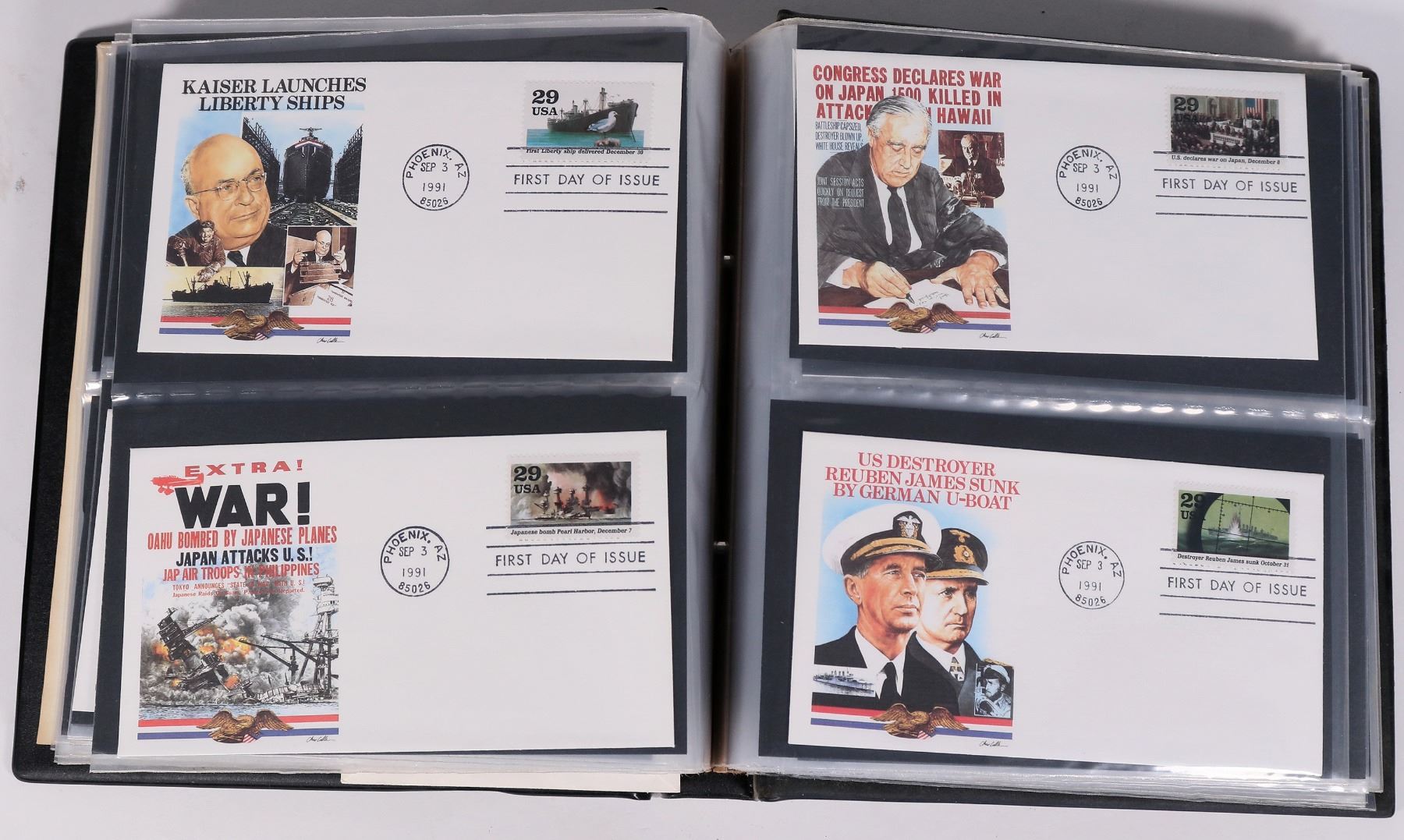 A nice cached First Day cover collection from 1991. Most of the cachets are color, and include all the categories, inclusive of space. The collection is housed in a Showgard cover album.