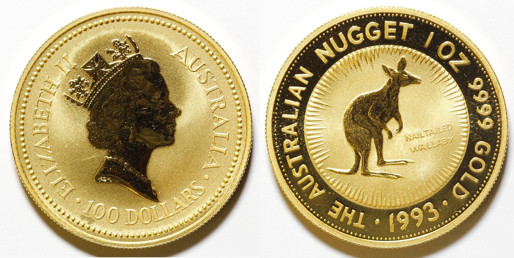 1993 One ounce Australian Nugget Gold Coin. Gem uncirculated Date: Location: Australia HWAC# 75932