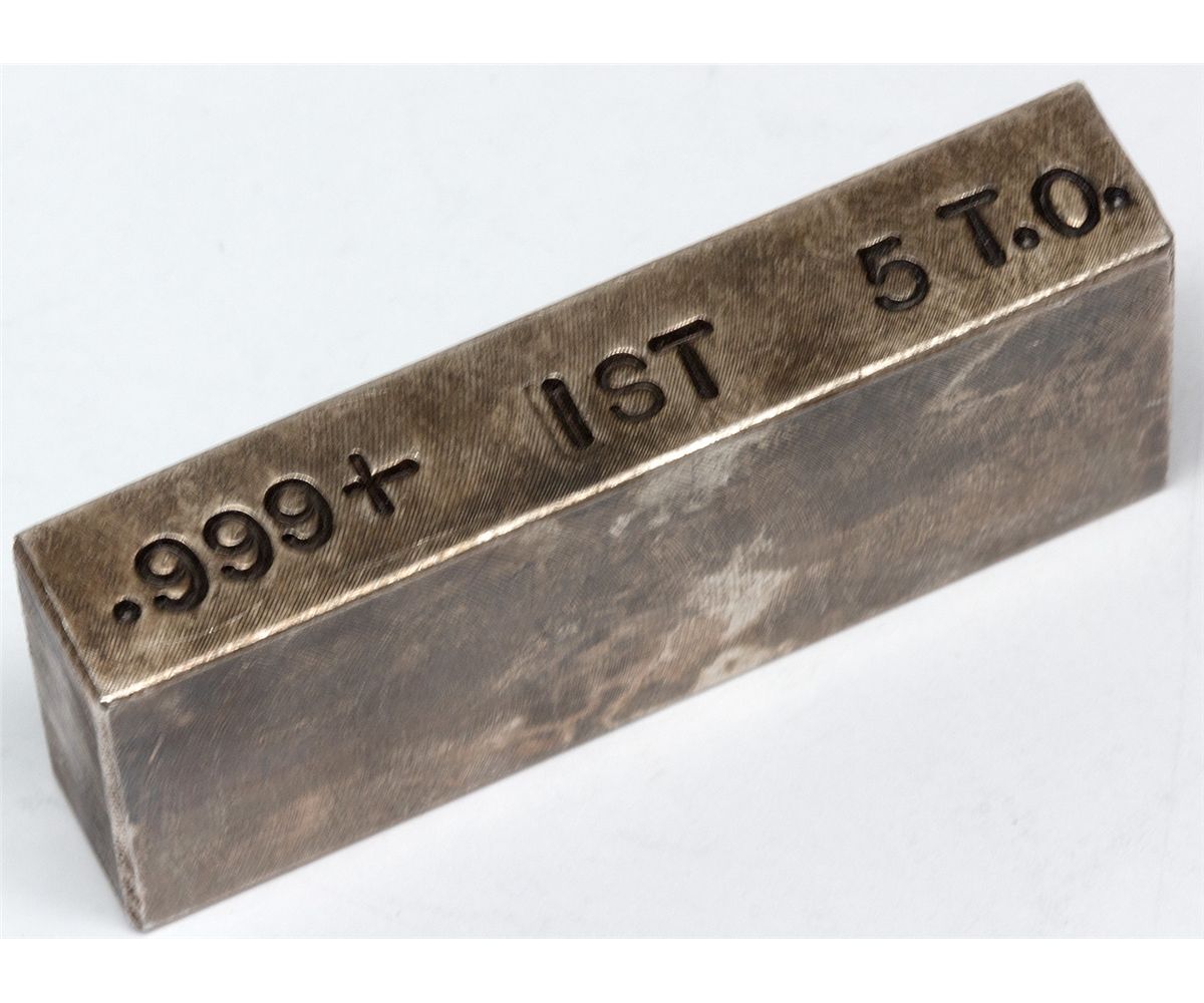 5 troy oz, .999+ fine. Highly polished bar (milled surfaces), slightly beveled edges.City: County: State: Date: