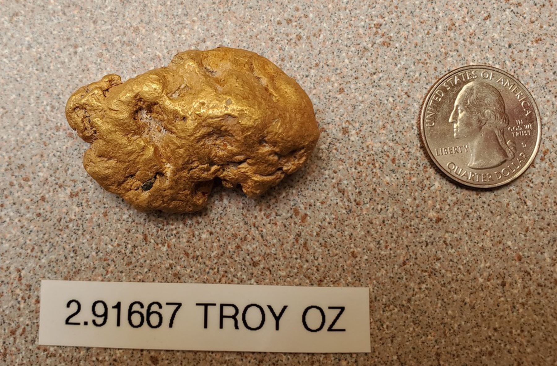 Nice nugget from Atlin district near Skagway. about 1 x 2". 2.92 troy ounces.Great for a pendant. BUYER'S PREMIUM FOR GOLD IS 17.5% WHEN PAYING WITH CASH OR CHECK.