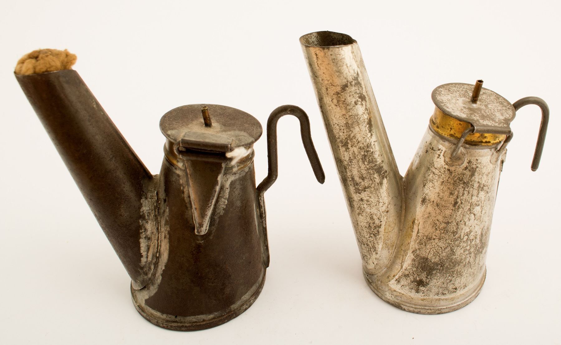 Unmarked, probably Felix. Different lid closures. with brass collars. 4 inchs tall, one has a small side dent. State: City: HWAC#: 48275 Date: