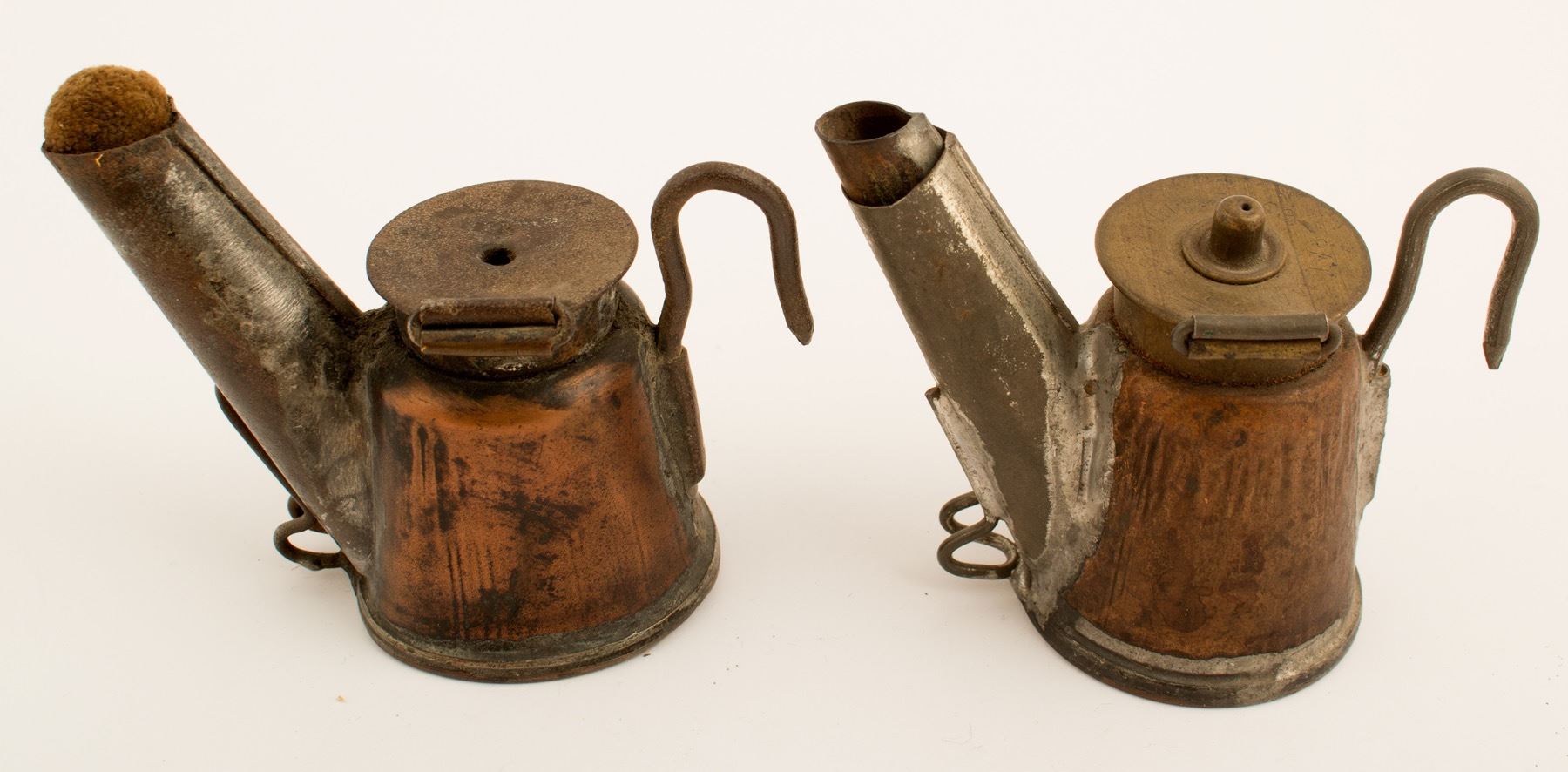Both are 2.75 inches tall, double wires on spout base. One is in nice condition the other one has a side dent and dented bottom. State: City: HWAC#: 48767 Date: