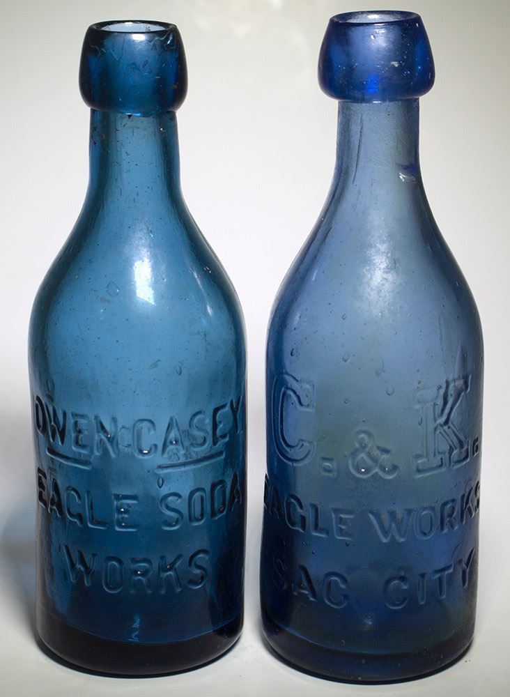 Light cobalt C. & K. / Eagle Works/ Sac. City. Cobalt Owen-Casey/ Eagle Soda Works/ Sac City. No visible cracks or chips. Shamberger collection. City: Sacramento State: California Date: HWAC# 50104