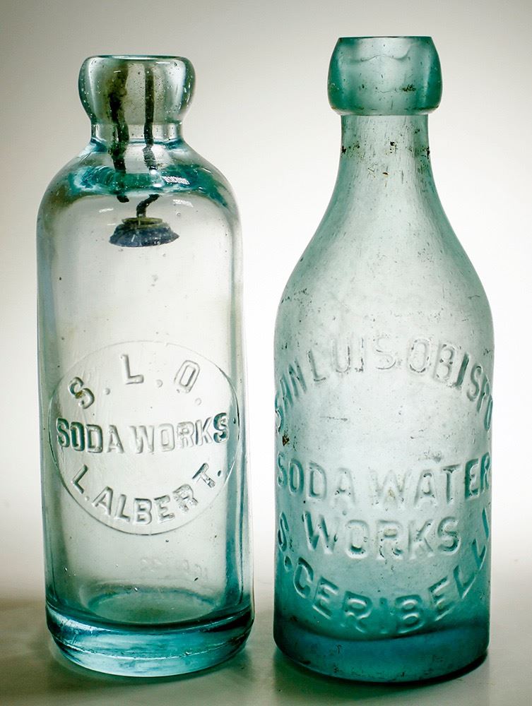 Aqua 6.75" tall S.L. O./Soda Works/ L. Albert inside circle. Metal stopper in neck. No visible chips or cracks. Aqua 7" San Luis Obispo/ Soda Works/ S. Ceribelli. Large lip chip. Shamberger collection. City: San Luis Obispo State: California Date: HWAC# 50108