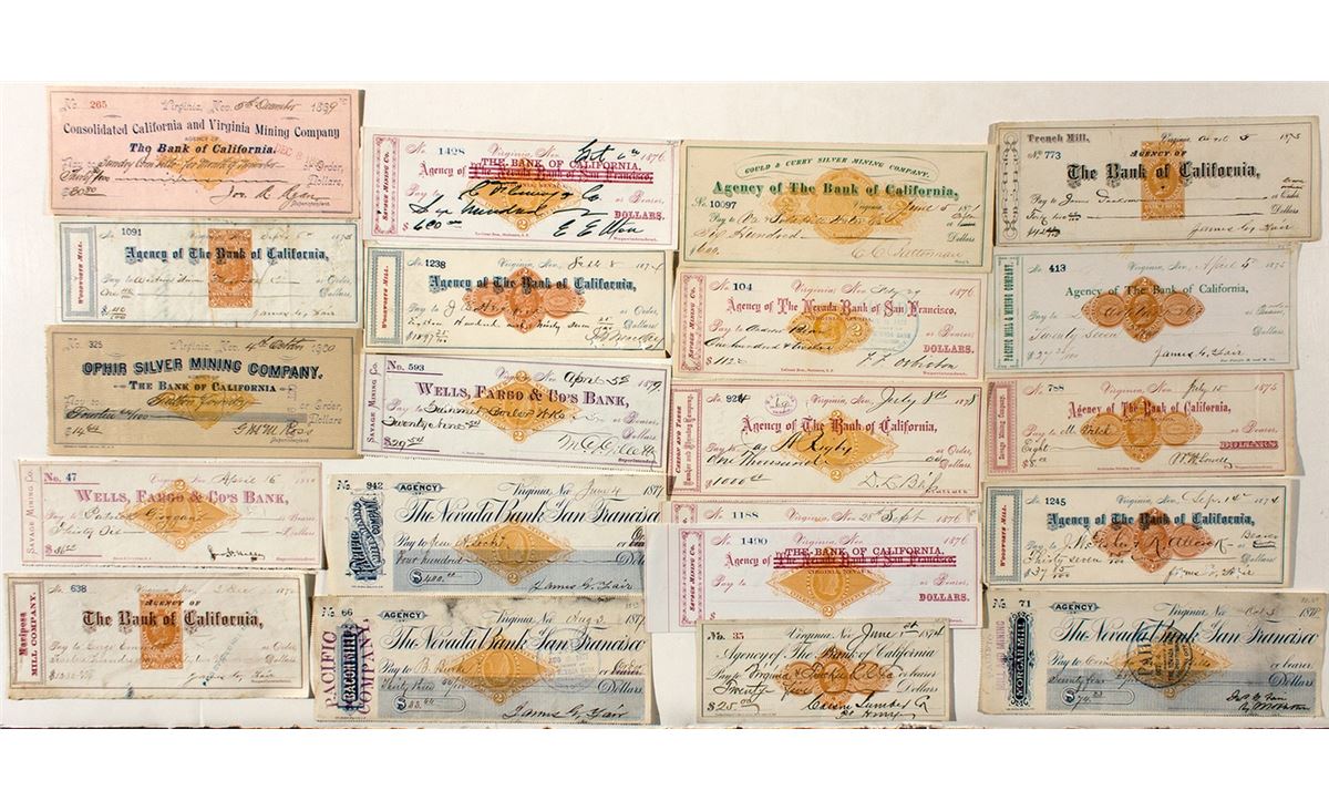 RN-D, RN-E, RN- G, and RN-X. Includes: Fair (Woodworth Mill, Pacific Mill & Mining Co., Trench Mill, Mariposa Mill Co.), Mackay (Woodworth Mill), Bliss (Carson & Tahoe Lumber & Fluming Co.), Batterman (Gould & Curry), etc. Many mines and companies represented. This is a great variety for either the revenue or the Comstock collector. (Prag Collection)