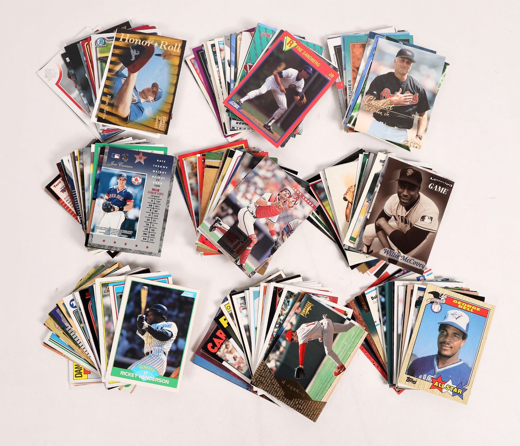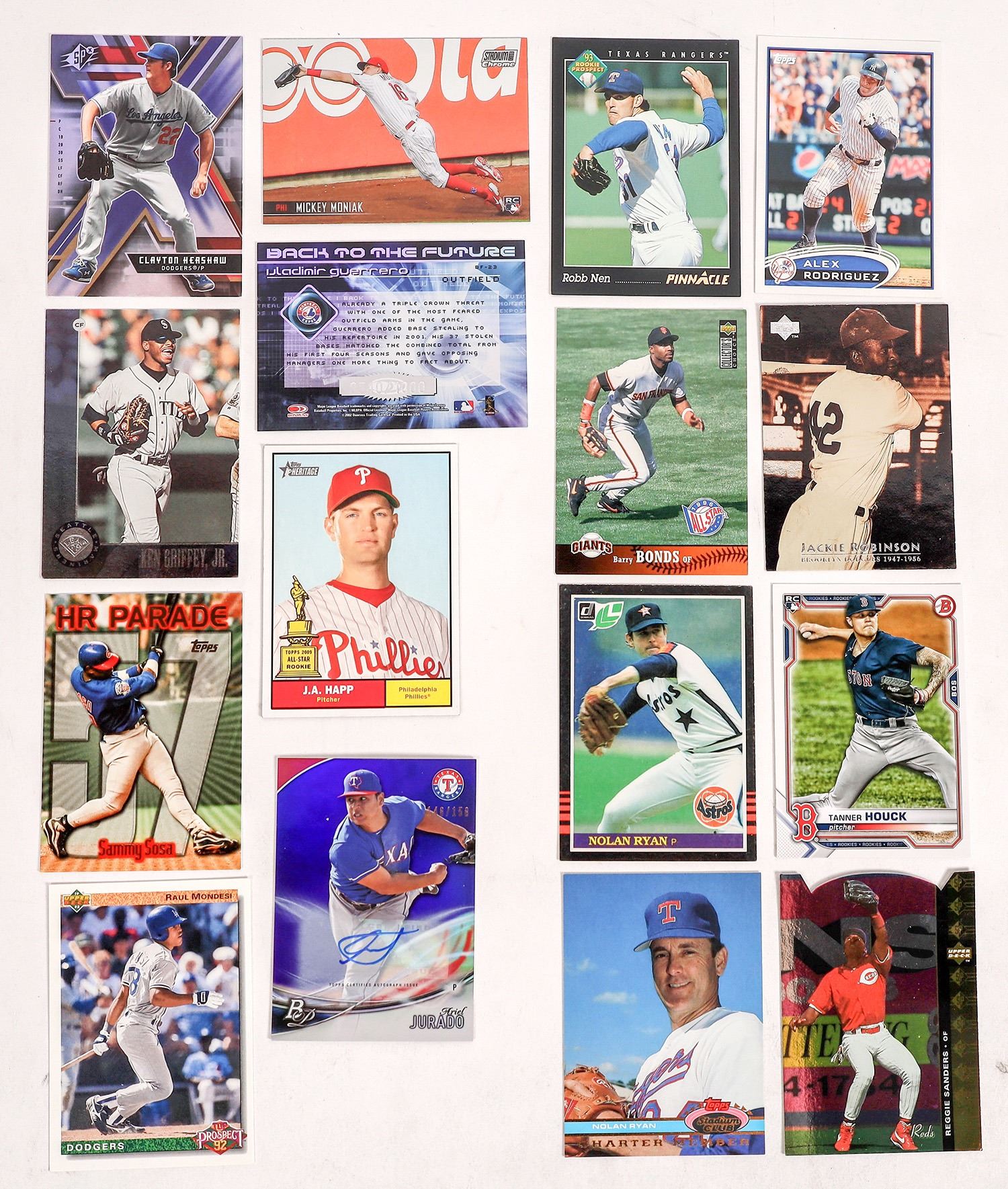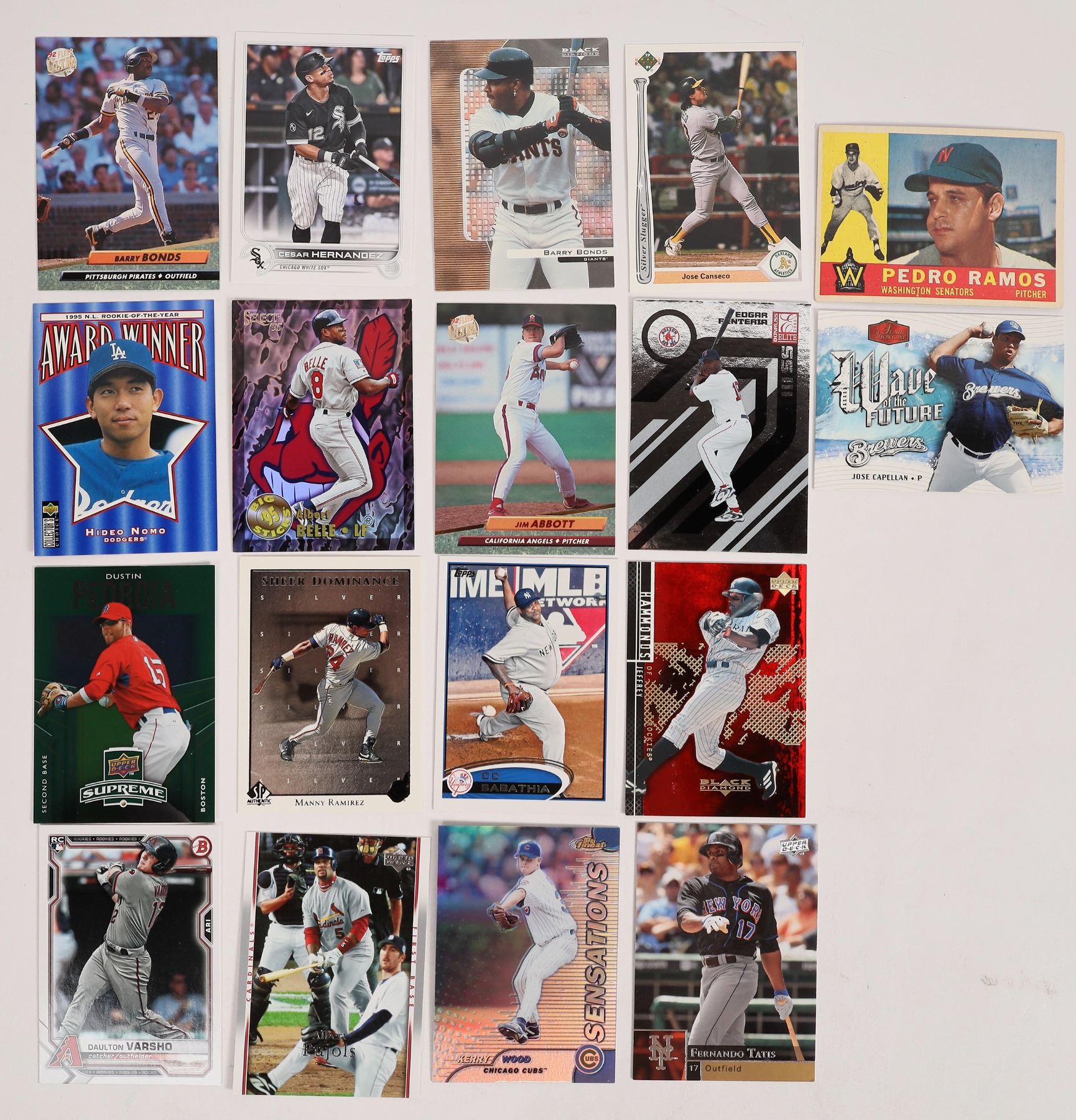 Includes several Vladimir Guerraro (numbered card), Rual Momdesi prospect, Robb Nen rookie prospect, Ariel Jurado autograph, Sammy Sosa, Ken Griffey Jr. Barry Bonds, Hideo Nomo, Daulton Varsho rookie, Nolan Ryan, Manny Ramirez, Fernando Tatis, Clayton Kershaw, Jose Capellan wave of the future, 1960 Pedro Ramos, etc. See both photos for some of the nicer cards. 250 +/- cards. Includes mostly well-known players, Hall of Fame inductees or future inductees, everyday players, and rookies/minor leaguers (some of which blossomed; most fizzled). Many insert cards! Randomly selected. Mostly 1980's and later. Older cards are peppered in and an occasional 1950's card appears. Who knows what treasure might be hidden in this collection? Great buy at 10c a card as a start price!