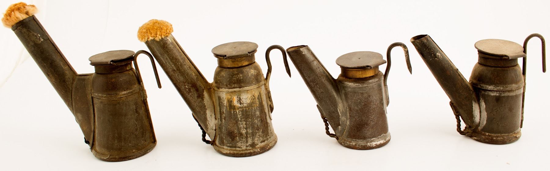 All 4 have twisted wire supports on the spout base. Ranging in height from 3 to 4.25 inches. This set is in overall very nice condition. State: City: HWAC#: 48753 Date: