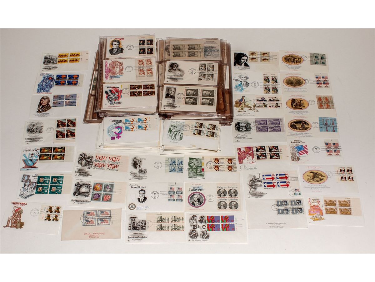 Fabulous selection that has to be seen to be believed! Includes: flags, Native American art, animals, Declaration of Independence, historic buildings, American history, Kennedy, postage, holidays, famous people, Presidents, flight, philatelic, battles, folklore, minerals, etc. , etc., etc. Photograph shows but a small selection! You just have to see it to believe it! About 400 altogether. Date c1940-2000 , hwac 20408