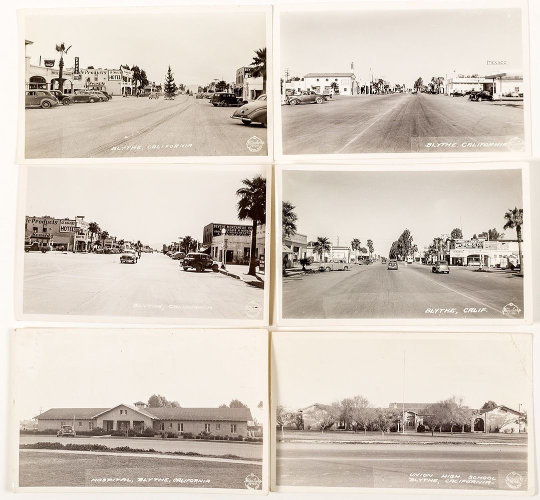 Six views of Blyth: 4 Street views, Hospital, Union High School. all photos by Frashers Fotos. (Prag Collection) City: Blythe State: California Date: ID# 44436