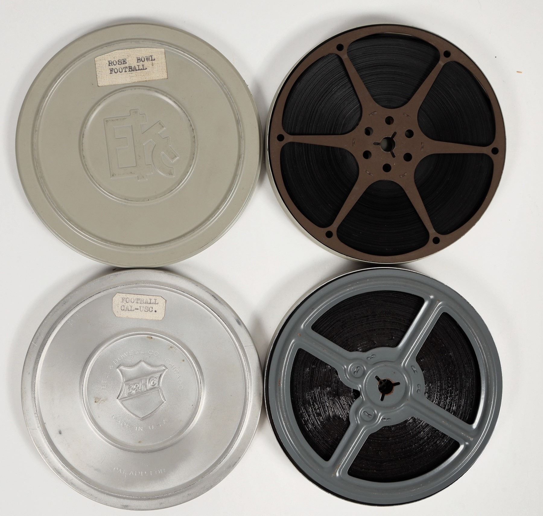 Pair of Home movie 8mm films of the annual Football rivalry between USC and UC California, and of the Rose Bowl. Original cases, measures 5.125" in diameter. Looks to be in good condition, can be converted for video review. (We cannot ascertain the Rose Bowl Teams, only the title)
