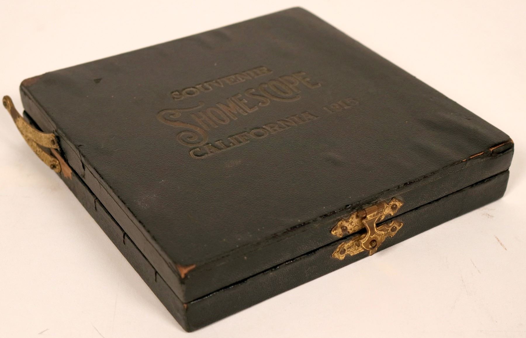 This is a 1914 patented Shomescope, sold as a souvenir at the 1915 Pan Pacific Exposition in San Francisco. The Shomescope is a device used to magnify picture postcards. This is in nice condition, ready for a viewing.