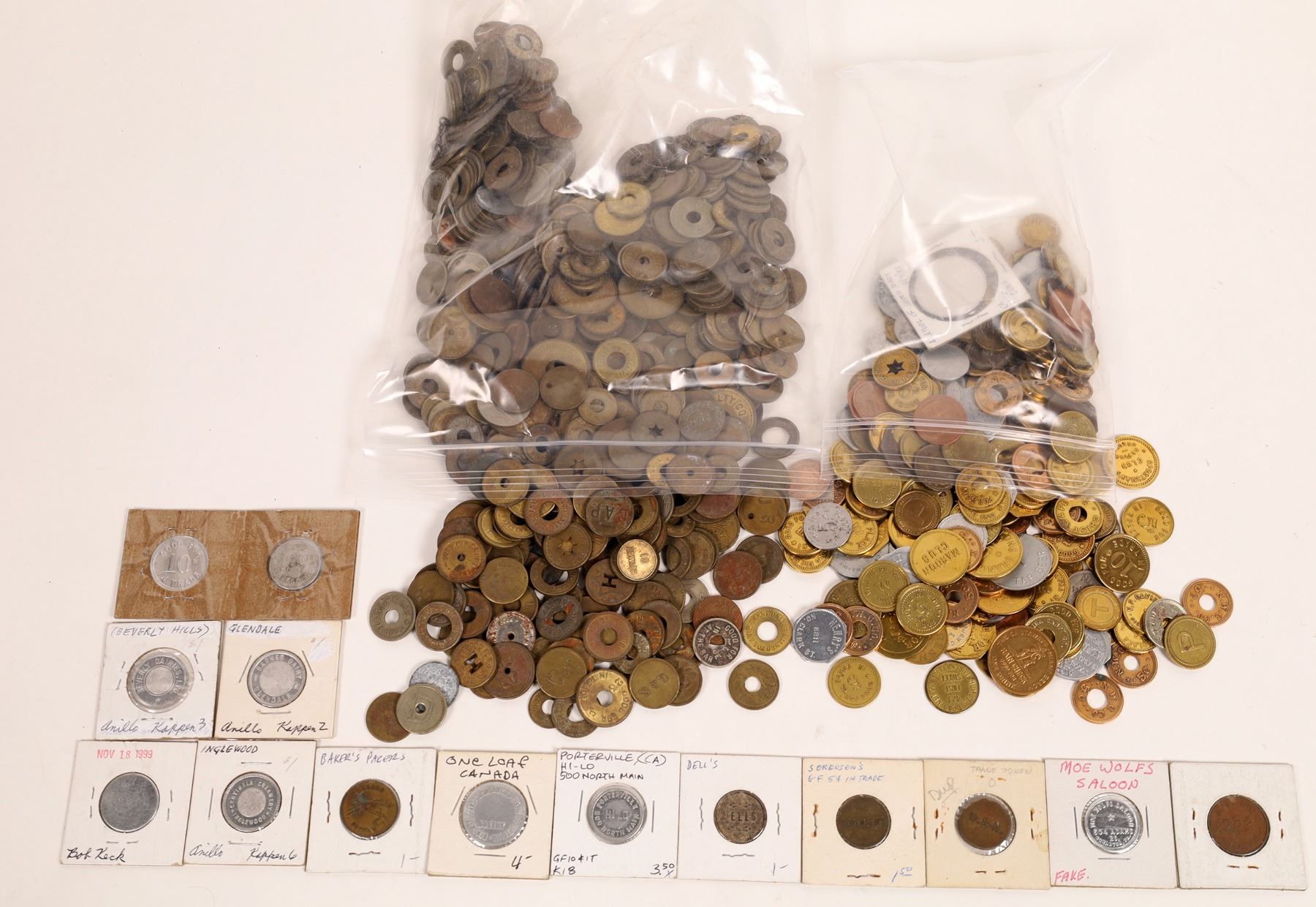 Around 1,000 "Good For" tokens from transportation, merchandise, food and drink. The variety contained here are mostly from the western region of the country.