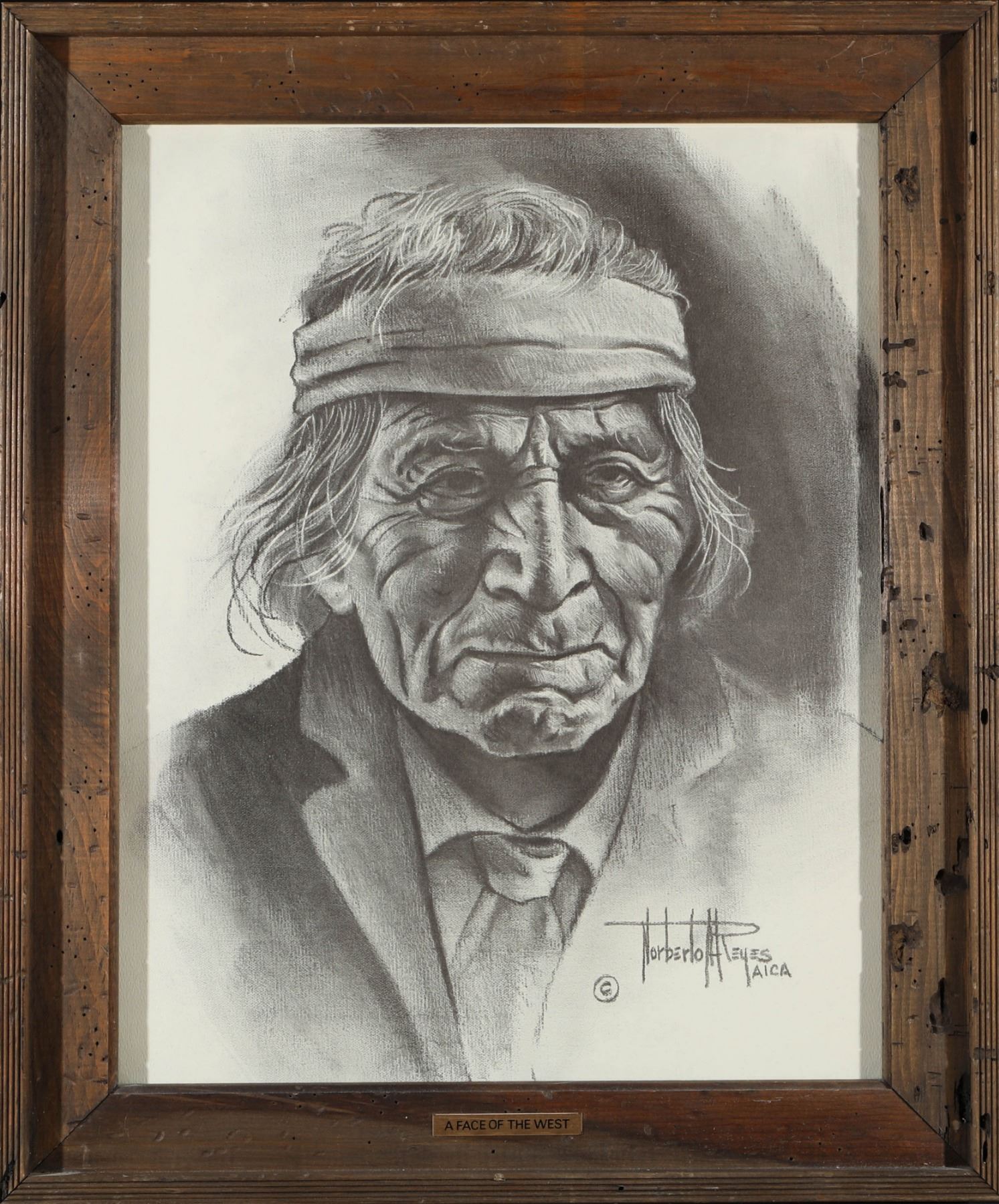 Framed charcoal Native American man by Norberto Reyes, frame 24.5x20"