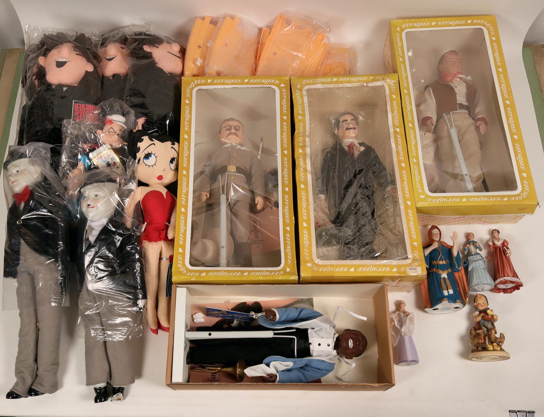 It's a cavalcade of stars captued in do;; likenesses. Group incldes John Wayne, Teddy Roosevelt, Groucho Marx, Laurel & Hardy and more. The real gem of the lot is a complete unopened set of Applause Beatles plushes, complete with guitars and Ringo drumsticks.