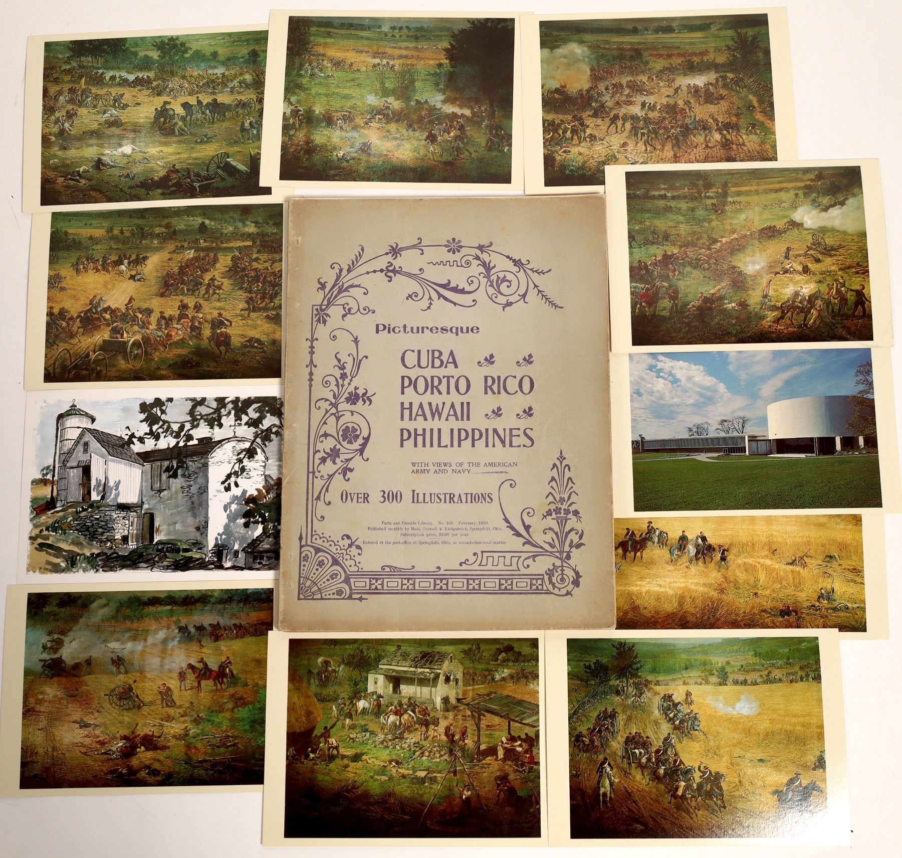 This lot has a photo journal of US Army activities around the world in 1899. Area of interest are: Cuba, Hawaii, the Philippines and Porto Rico. The lot also includes postcards of Civil War Gettysburg Cycloramas in the National Monument.