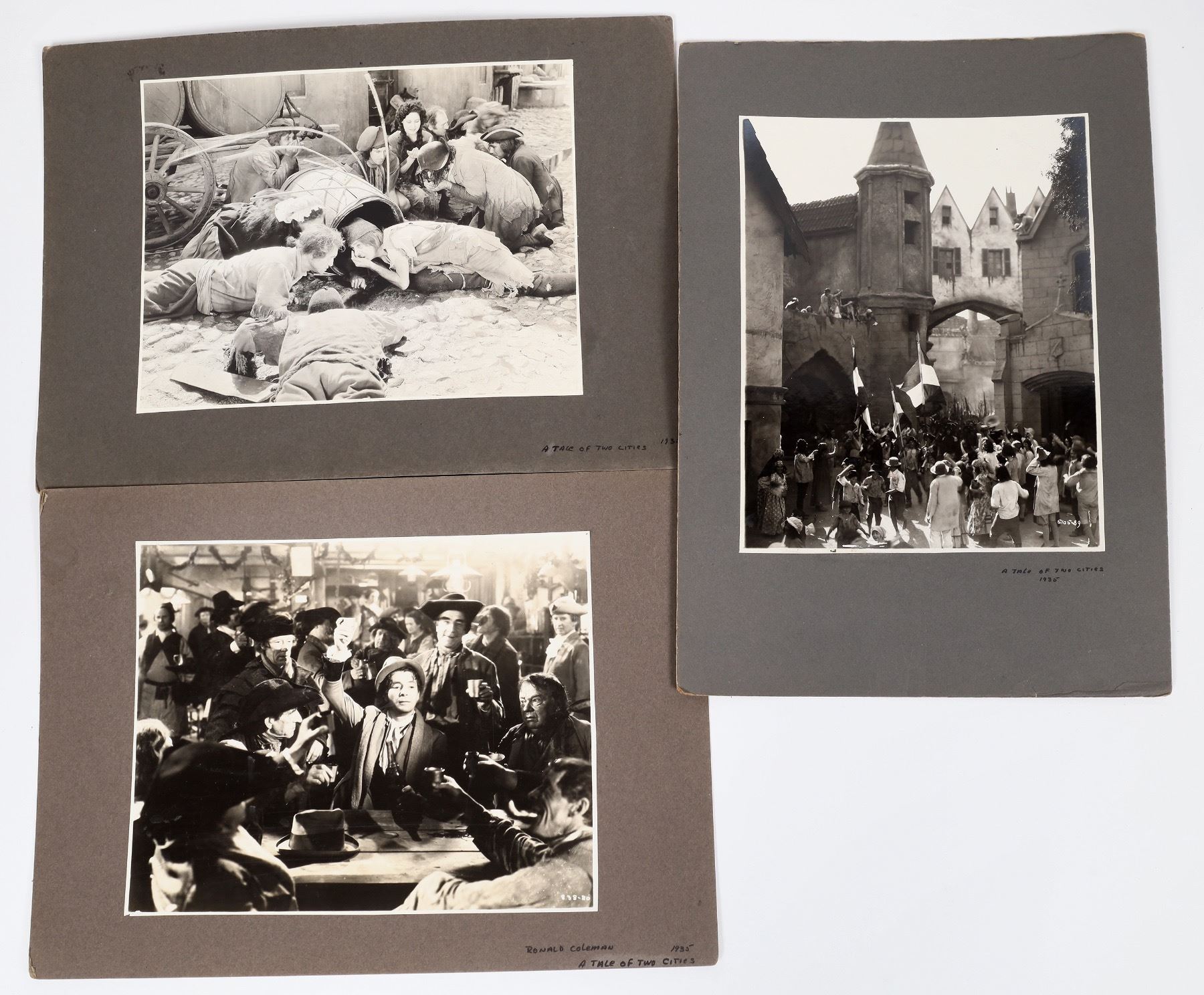 Three photographs from the 1935 movie, A Tale of Two Cities, based on the Charles Dickens novel. The film starred Ronald Coleman and Elizabeth Allan. All three photographs are mounted, overall size of each in 10 x 14 inches. Good condition.