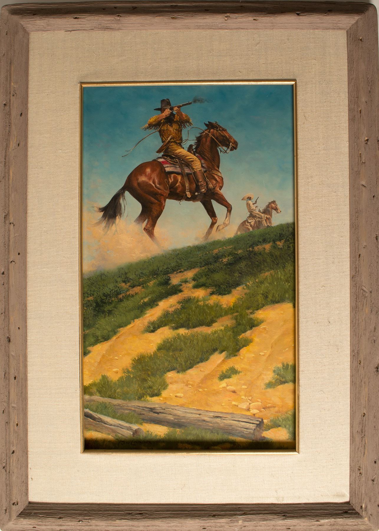 "A Texas Ranger" by Ken Laager. Oil painting, 16.5" x 9.5", linen liner, framed 24" x 17.5". State:Pennsylvania City: Date: ID# 48069