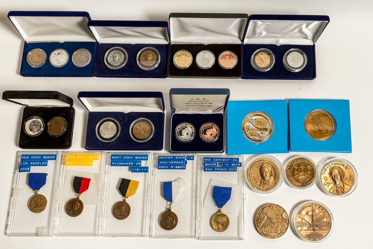 Each of these years contains the show hanging medal, the bronze medallion, and the two or three piece medal set including silver. Additional items include the 2005 gold plated legacy medal, an additional large bronze medal in 2007, an additional two medal set for 2008, and an additional two medal set for 2009. (Don Young Collection) State: City: Date: 2005-2009 FHWAC#: 43173