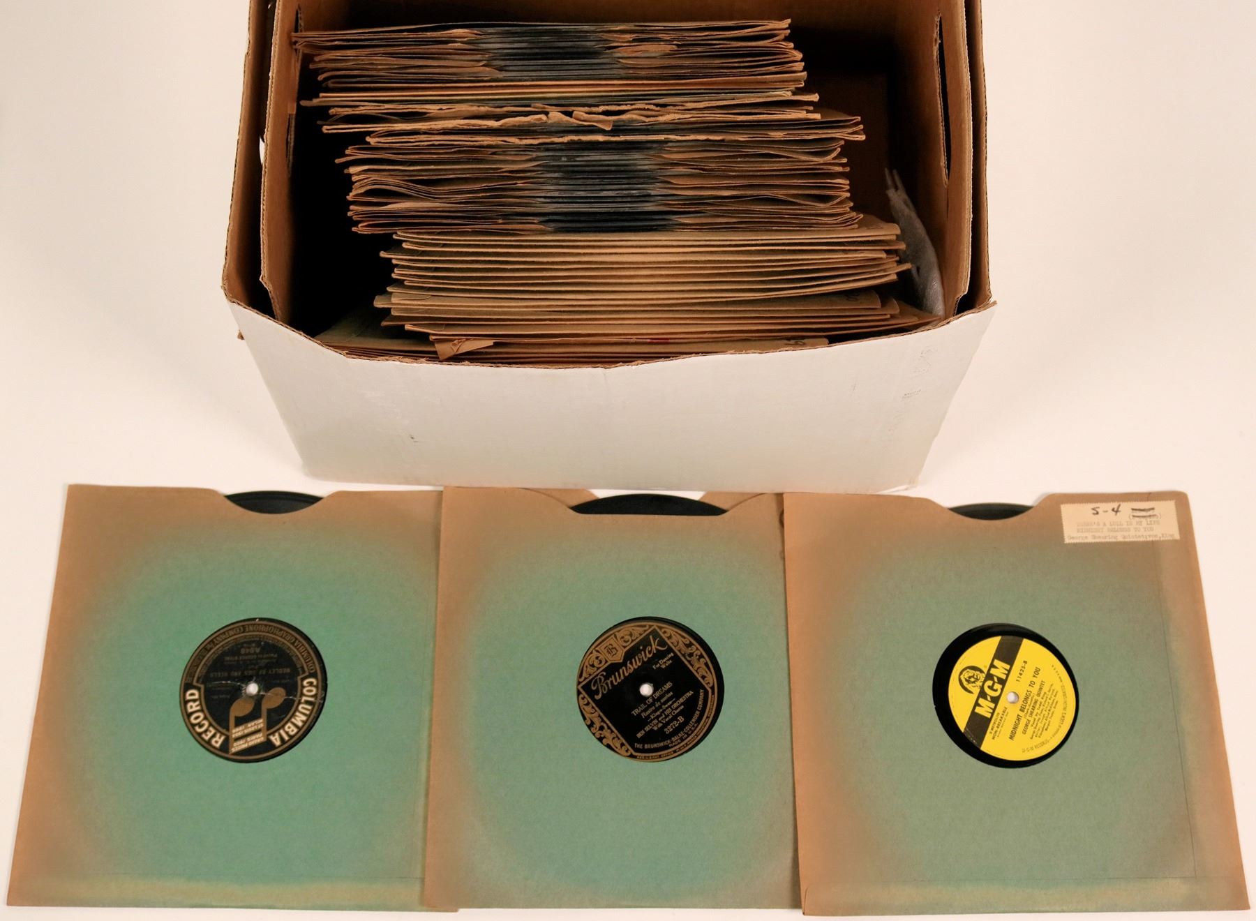 bank box of over 50 78 rpm records from the bop & swing era, including George Shearing, Leon Sash, George Stehl, among others.