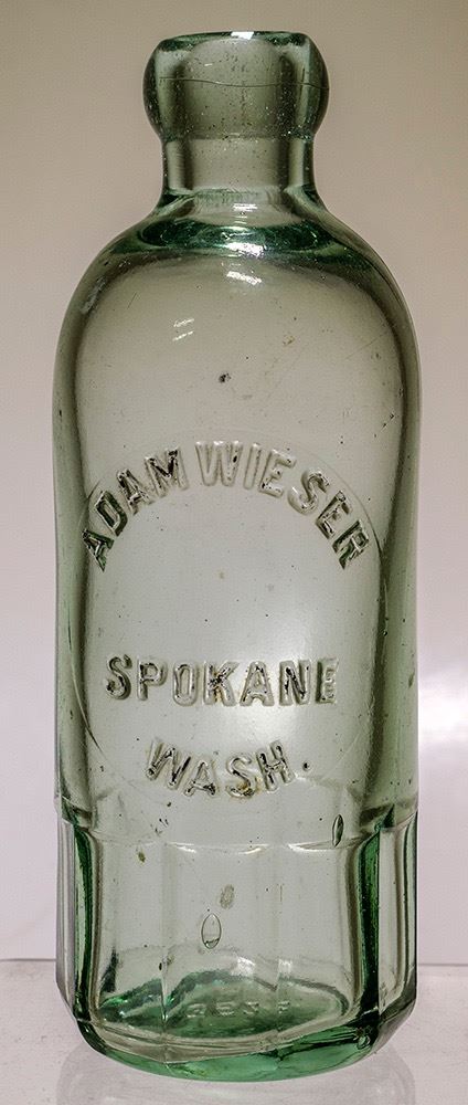 Adam Weiser, Spokane, fluted base, aqua Hutch soda bottle clean, mint. 277G in Fowler. Rare. Date: Location: Washington HWAC# 47051