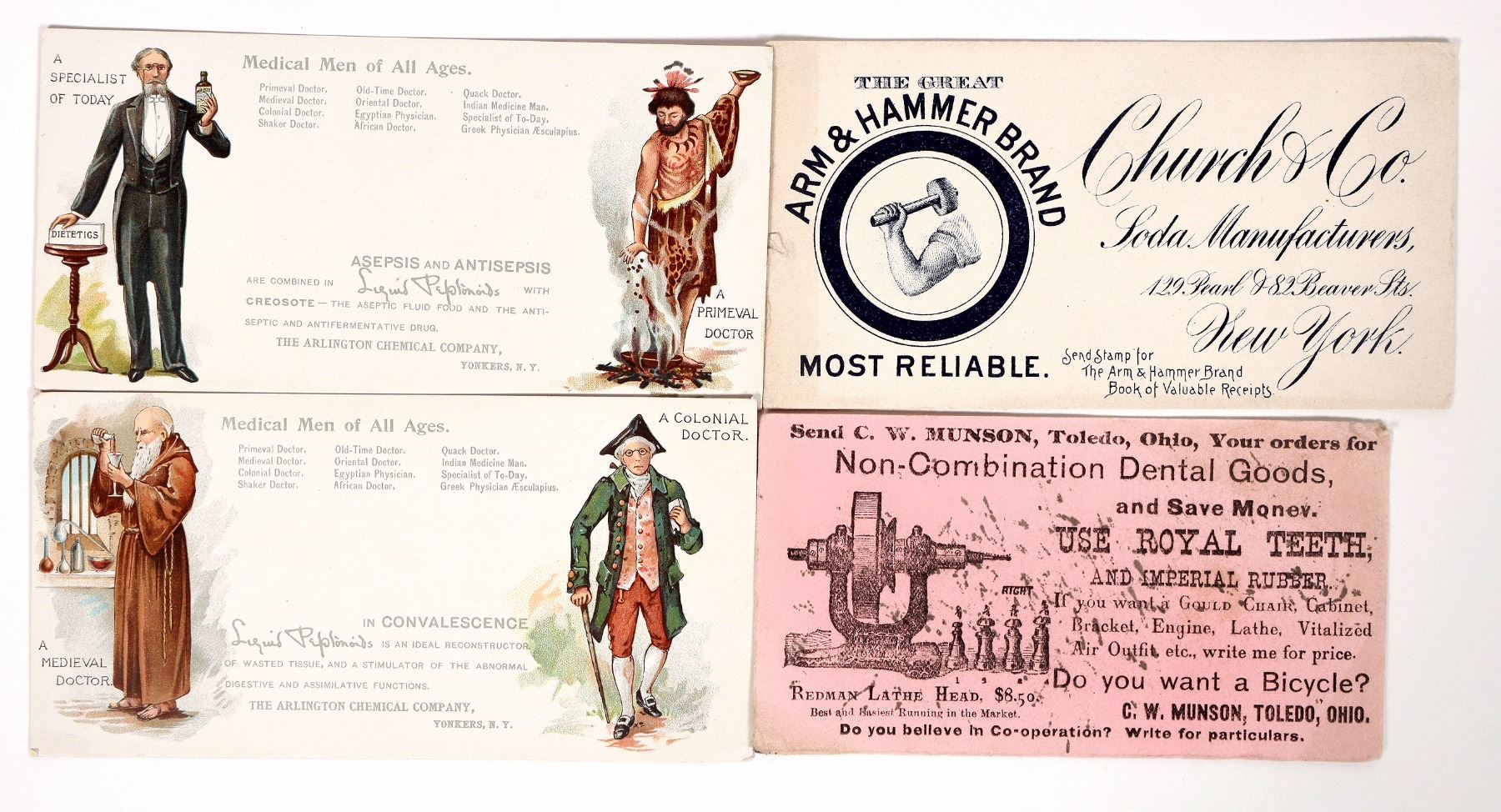 4 advertising ink blotters. 2x Arlington Chemical, Arm & Hammer-left stain and .3" tear, CW Munson-fair condition.