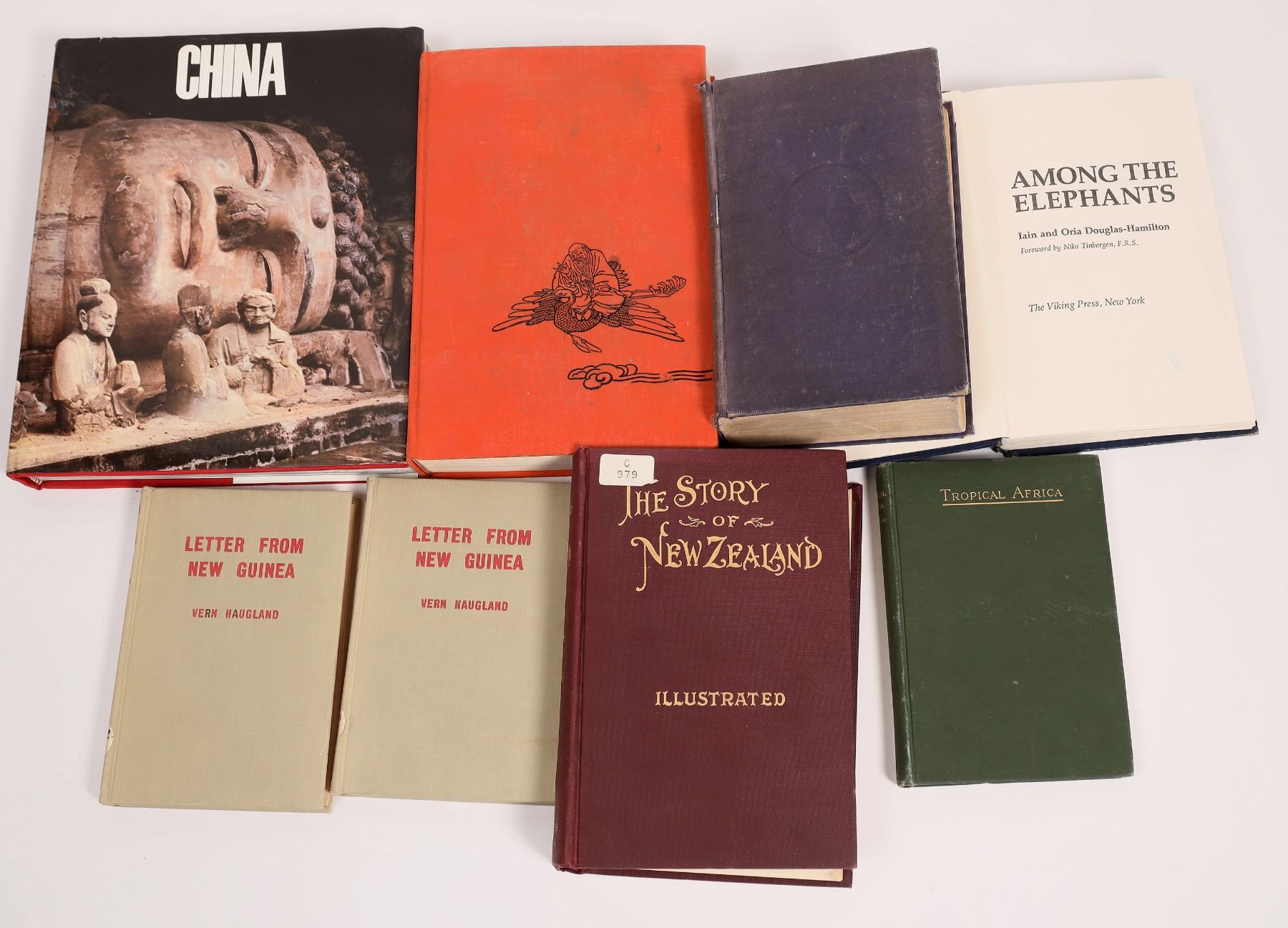 2x Letter from New Guinea by Haugland. The Story of New Zealand by Parsons. In Darkest Africa by Stanley. Among the Elephants by Douglas, Tropical Africa by Drummond. Translations from the Chinese by Waley with attractive binding. China by Ravia. State: City: Date: Provenance: Stuart Mackenzie Montana Ephemera Collection