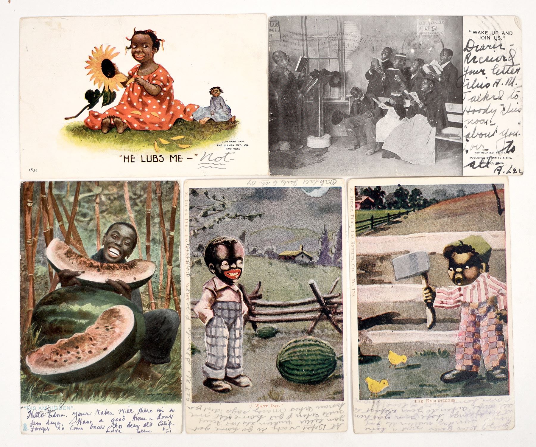 A collection of 5 African American themed postcards, c1901-08. All postmarked and canceled.