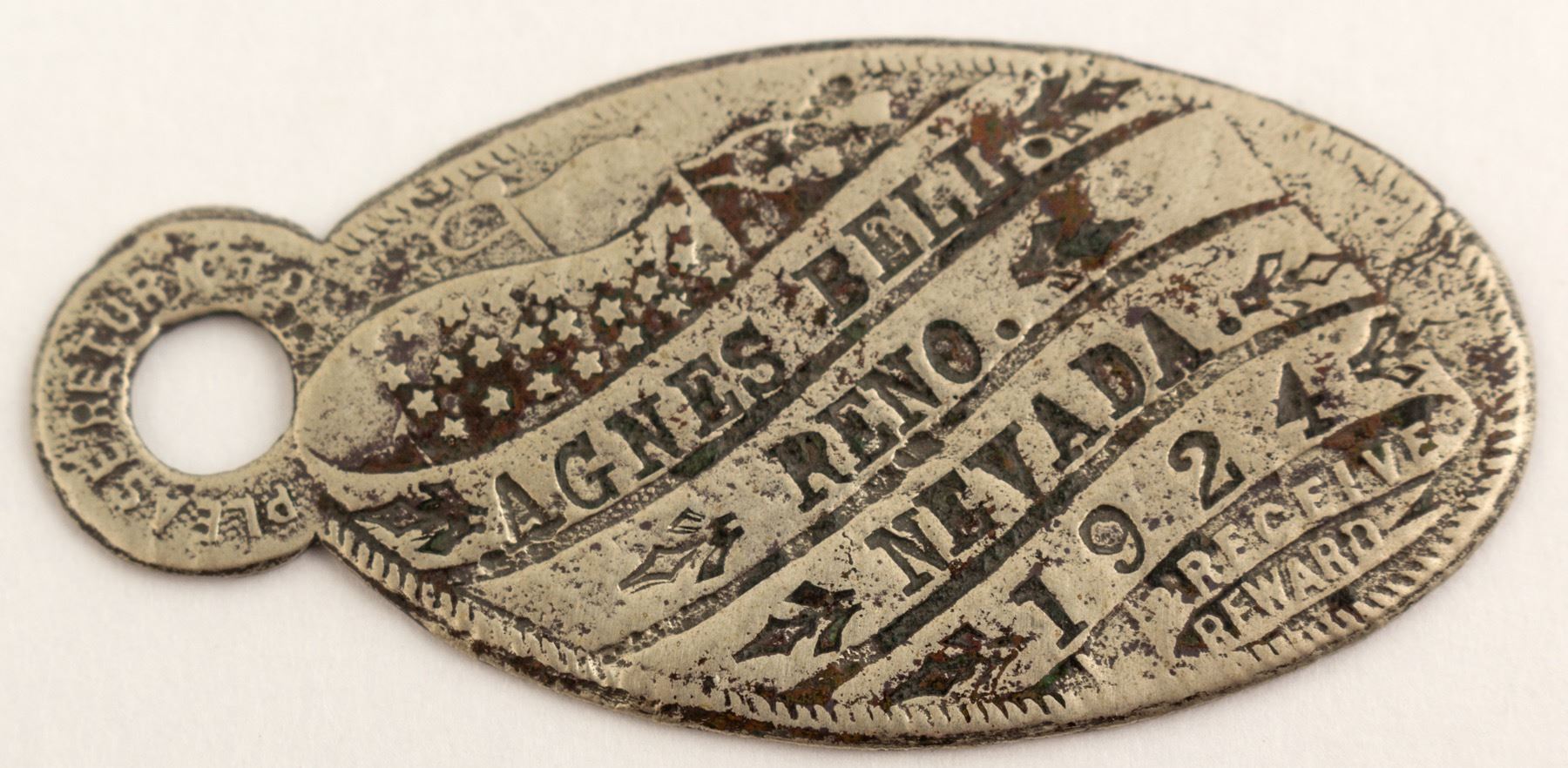 Agnes Bell was a long time teacher in Reno. Her father, Frank Bell, was Nevada's reluctant Governor. He became Governor although he was never elected either Governor or Lieutenant Governor. Through a series of appointments, he found himself in this position. State: Nevada City: Reno HWAC#: 48110 Date: 1924