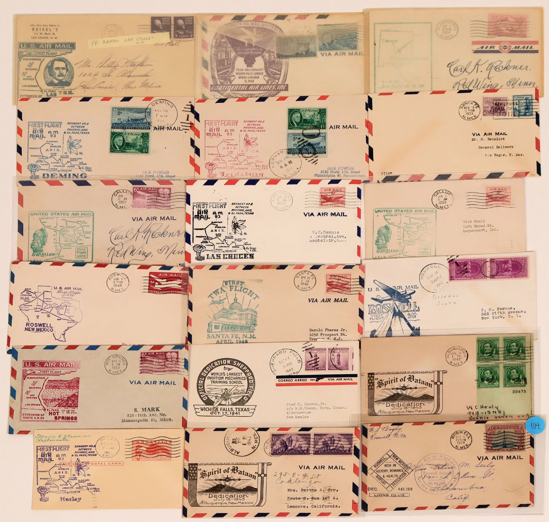 Lot of 18 first flight and dedication covers from New Mexico, c1929-1954. Includes cachet covers, and a pilot and postmaster autograph.