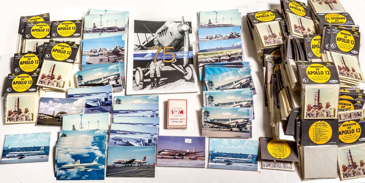 Dozens of 12 ct. mission of Apollo 12 official NASA photographs in original packaging. Also contains over 100 passenger aircraft postcards with different planes. Fantastic dealer lot. City: State: Date: Inventory# 38557
